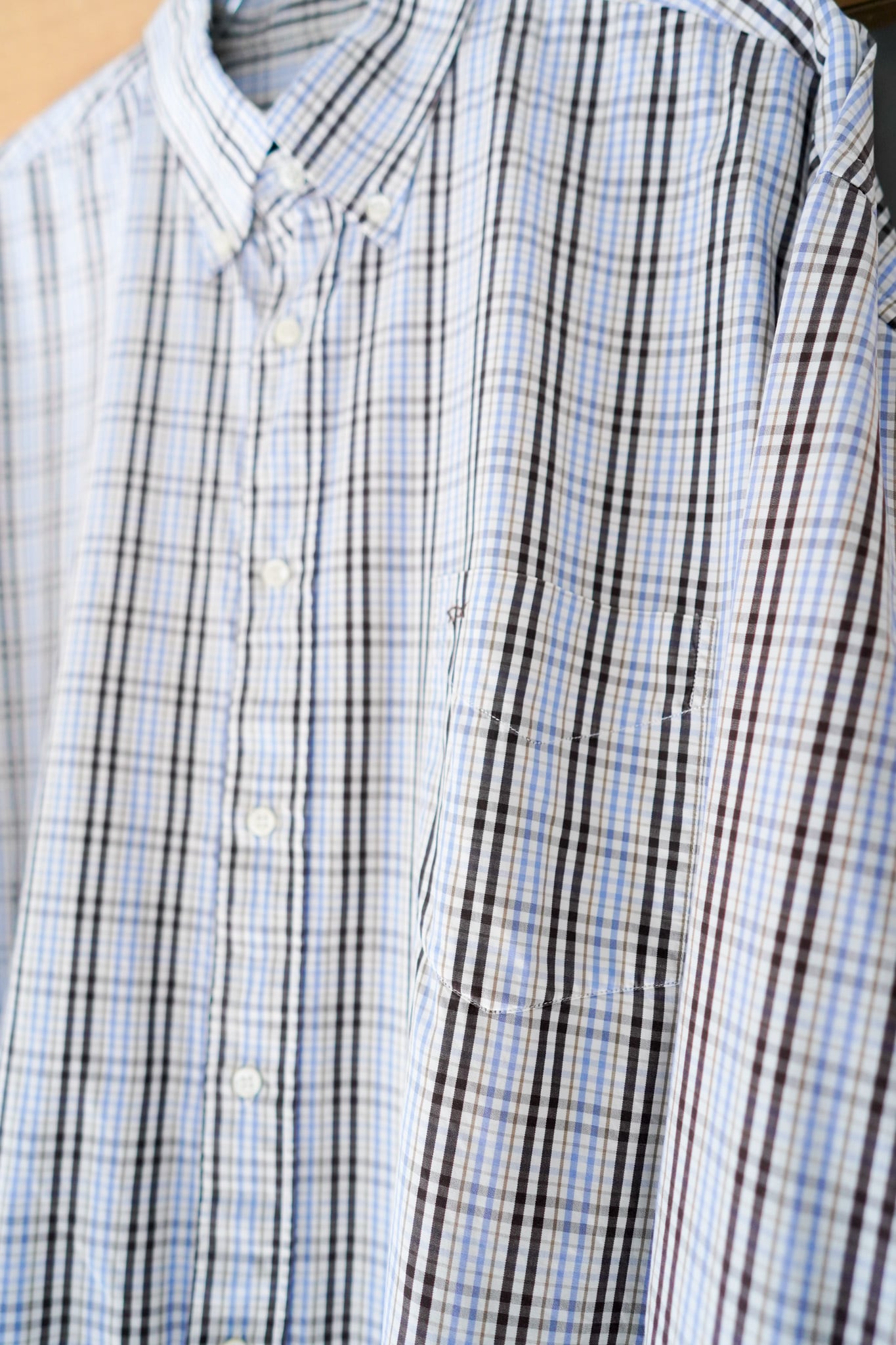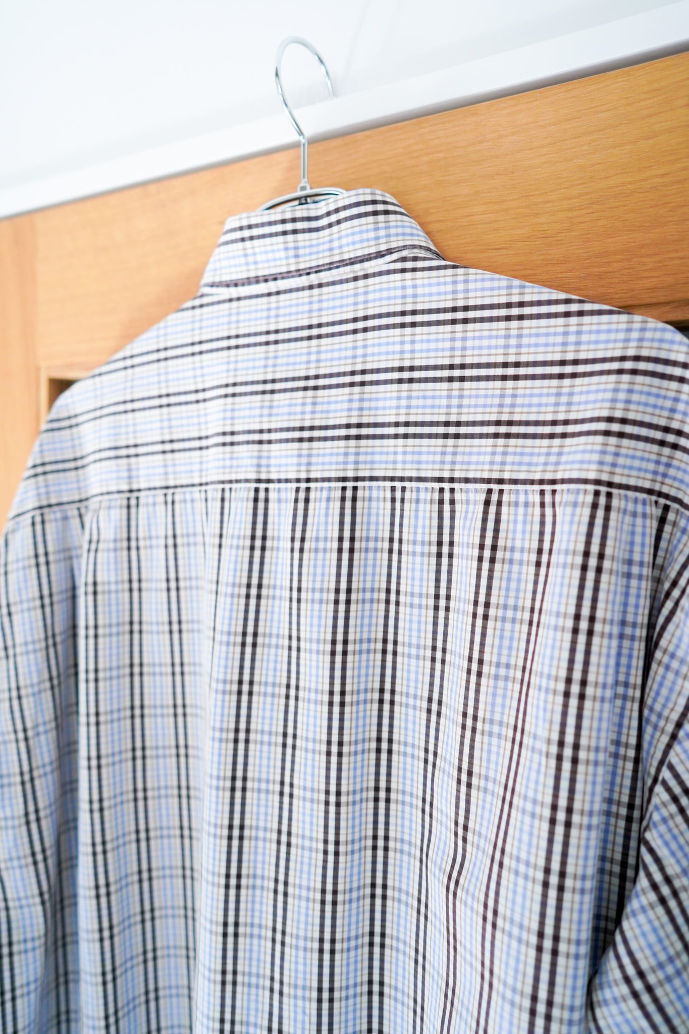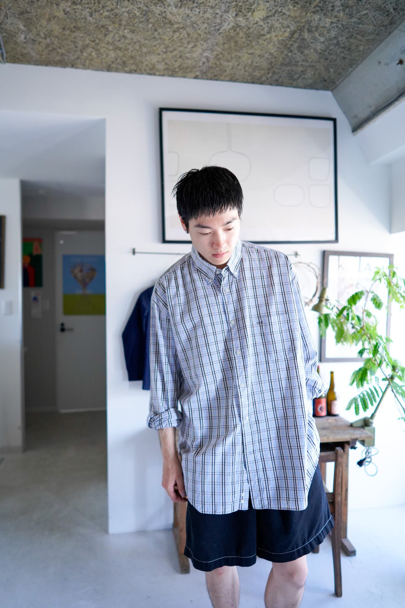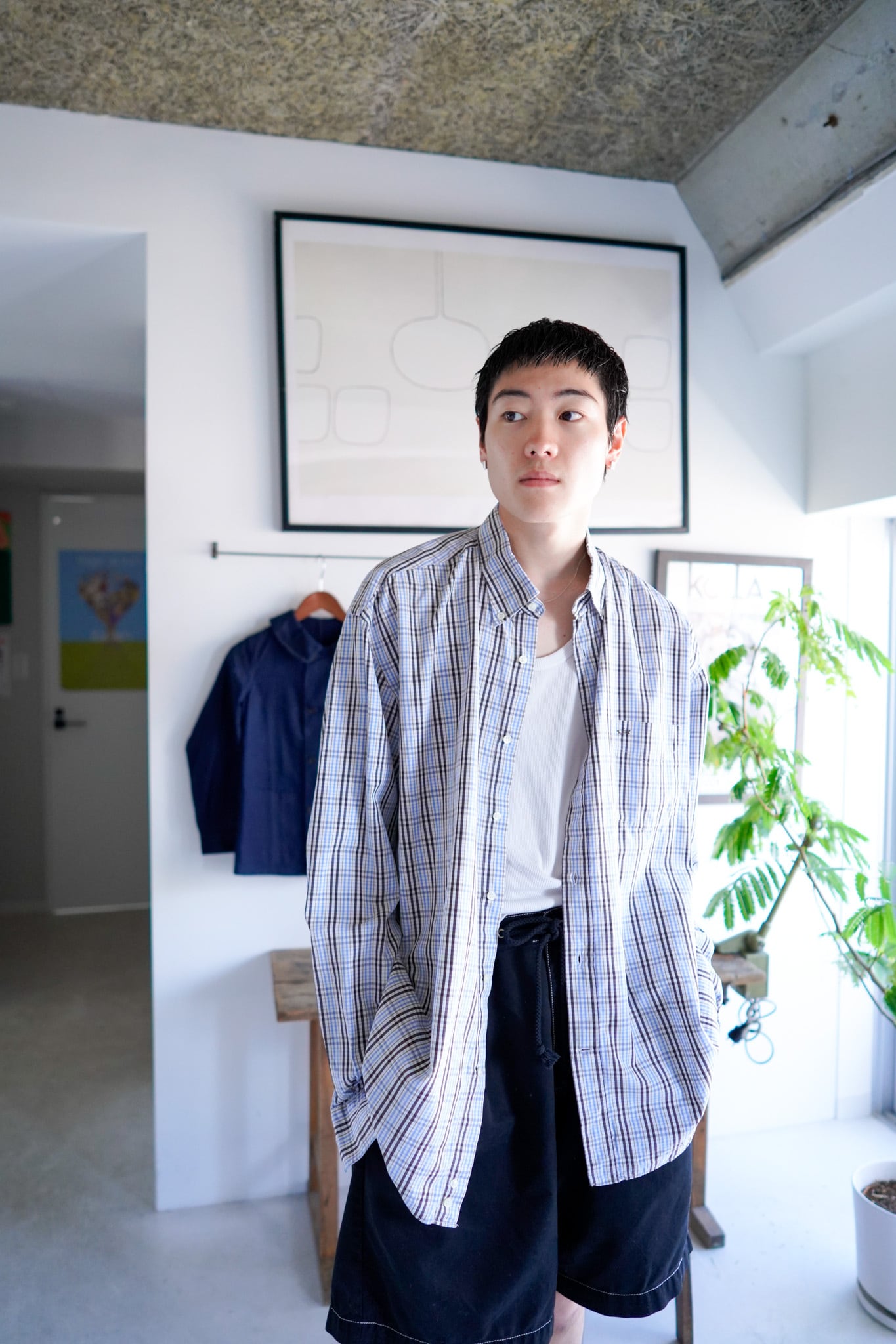 ドレス生地ながらチェックパターンにボタンダウン仕様、大きめなサイジングでカジュアルに着用するのがおすすめです。
