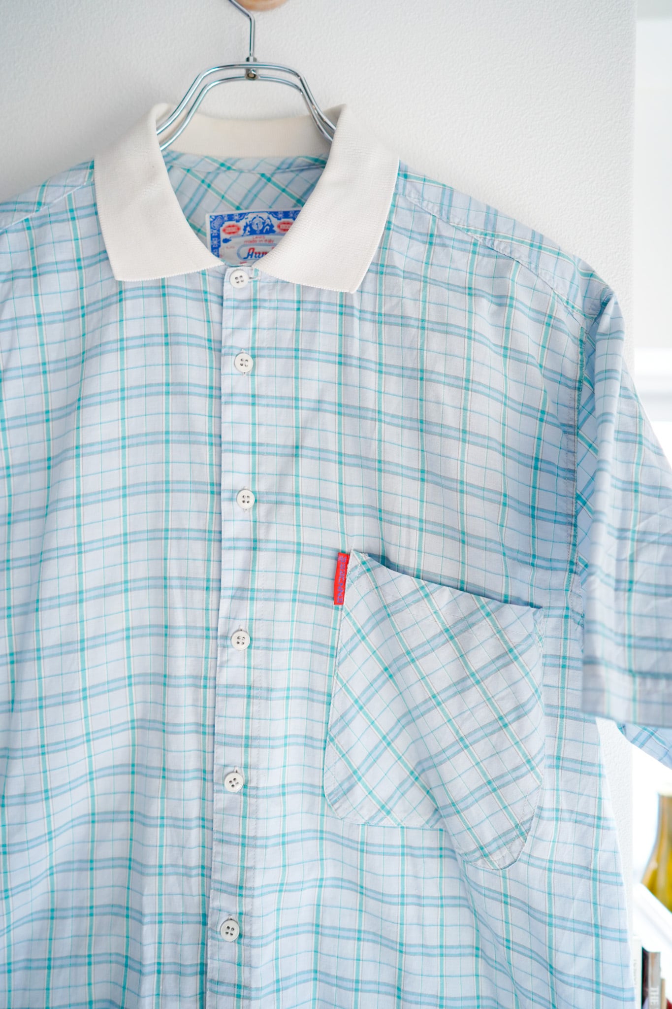 【1980s】"Italy,Check Pattern" Europe Short Sleeve Shirt /5-244