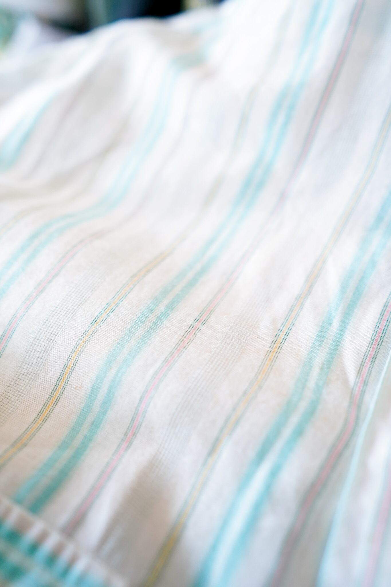 マルチカラーのストライプに薄手の生地感が爽やかな個体です。