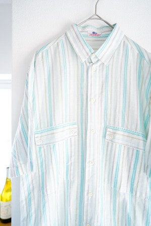 【1980s】"Italy,Multi Stripe" Europe Short Sleeve Shirt /5-283