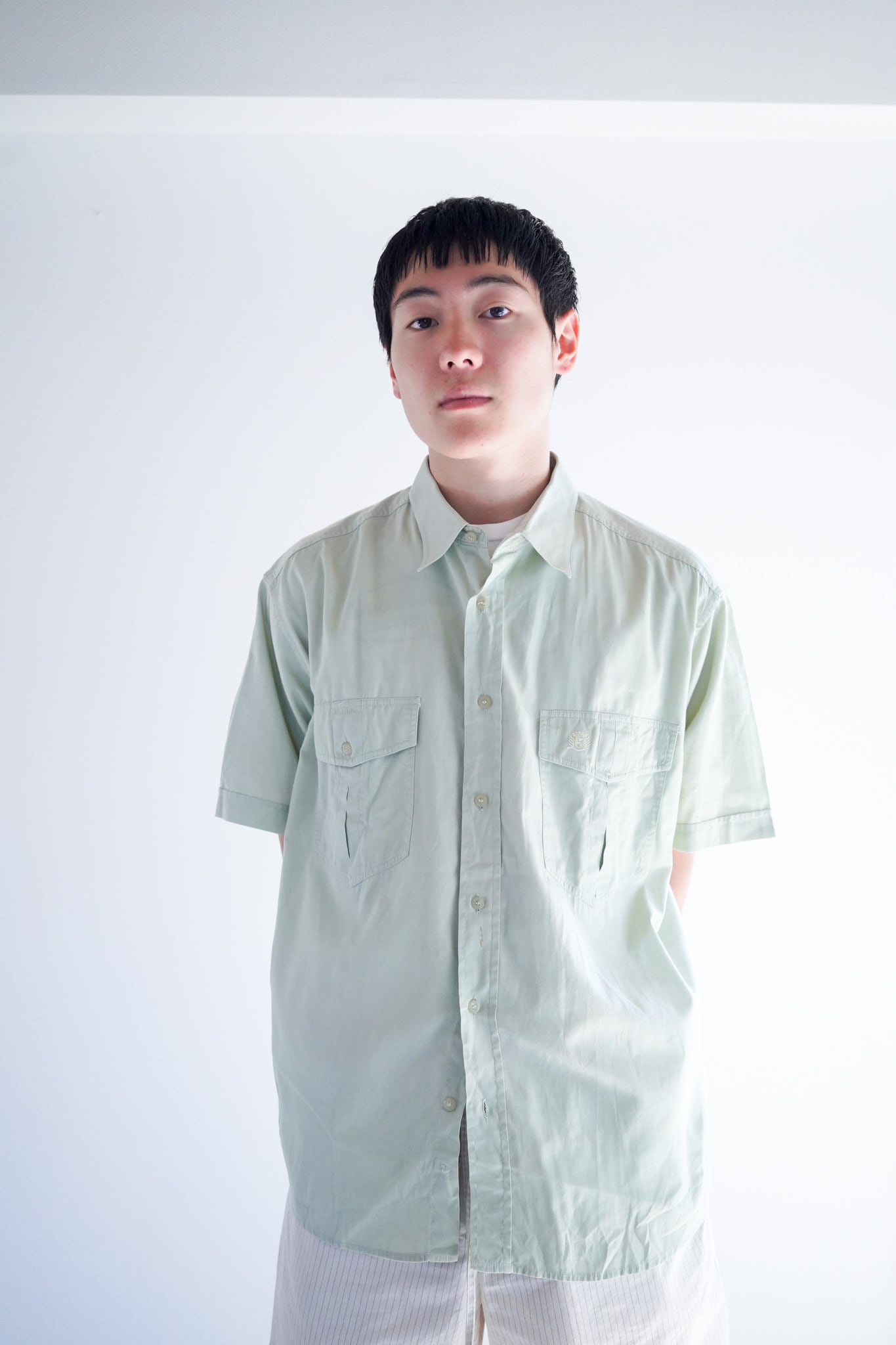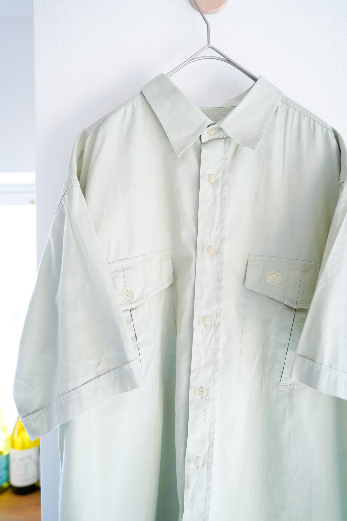 【1990s】"Italy,,Olive Green" Europe Short Sleeve Shirt /5-285