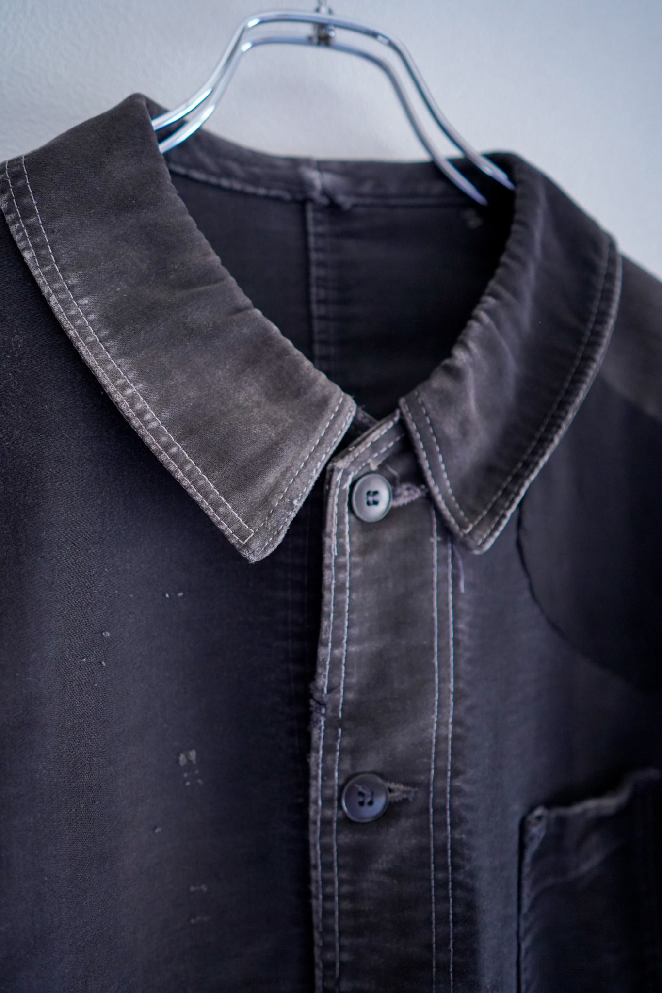 【1940-50s】"Dubure&Deverchere" Black Moleskin JKT/ 5-308