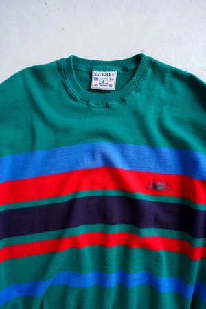 【1980s】"Italy, Multi Border" Europe Knitting Sweater / 5-234