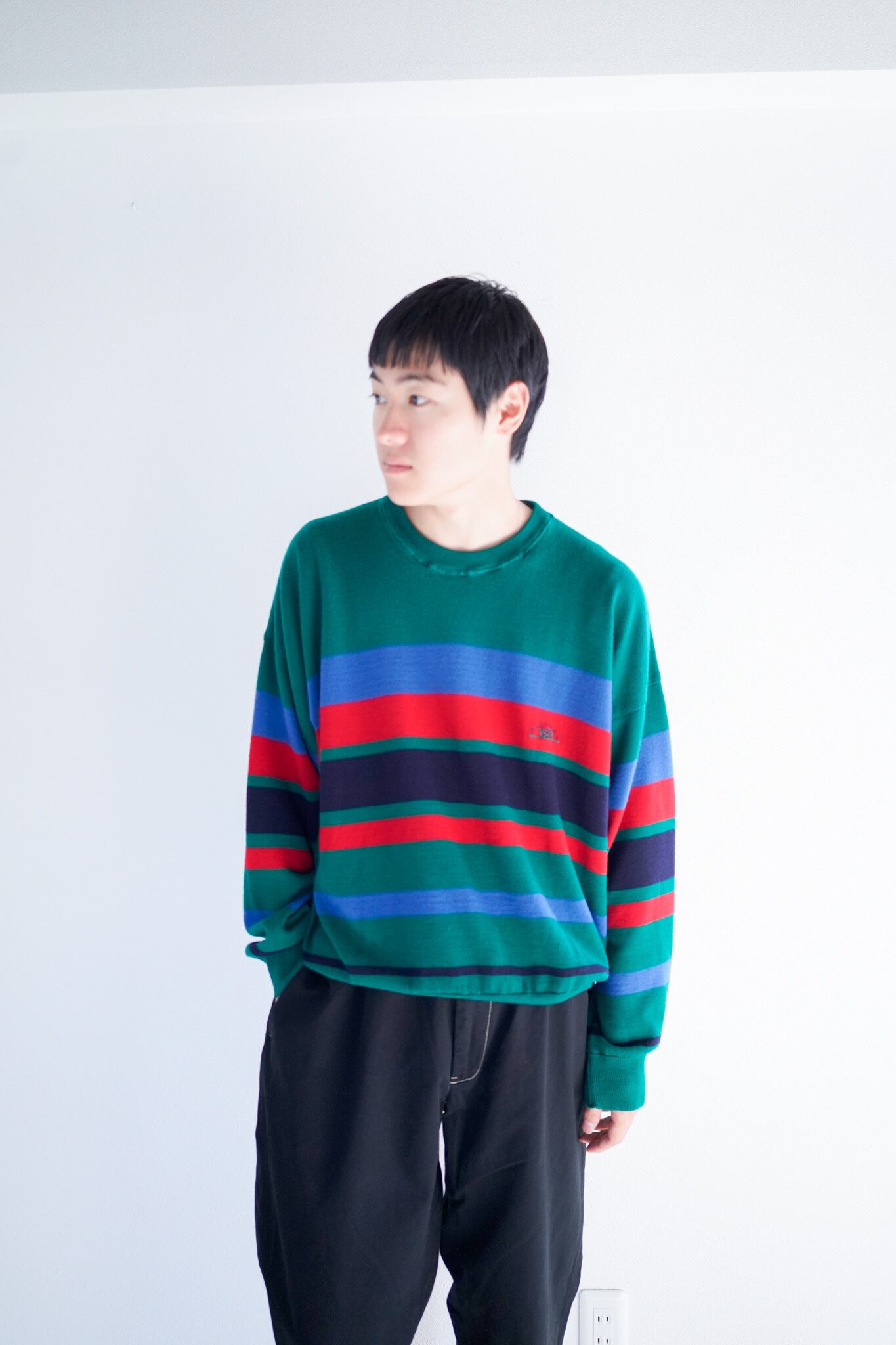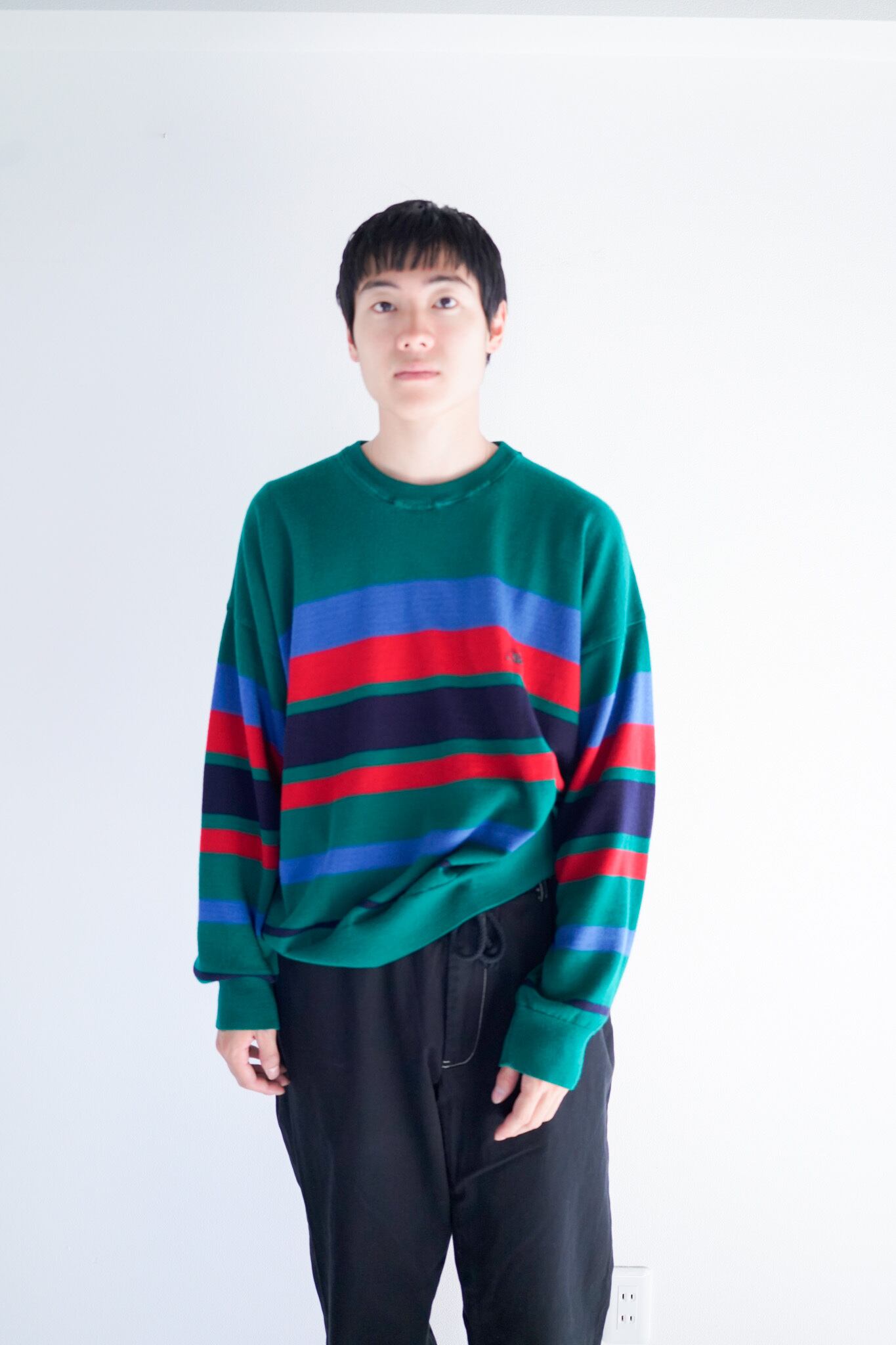 マルチボーダーの配色もイタリアらしく、スウェット感覚でお召しいただけるかと思います。