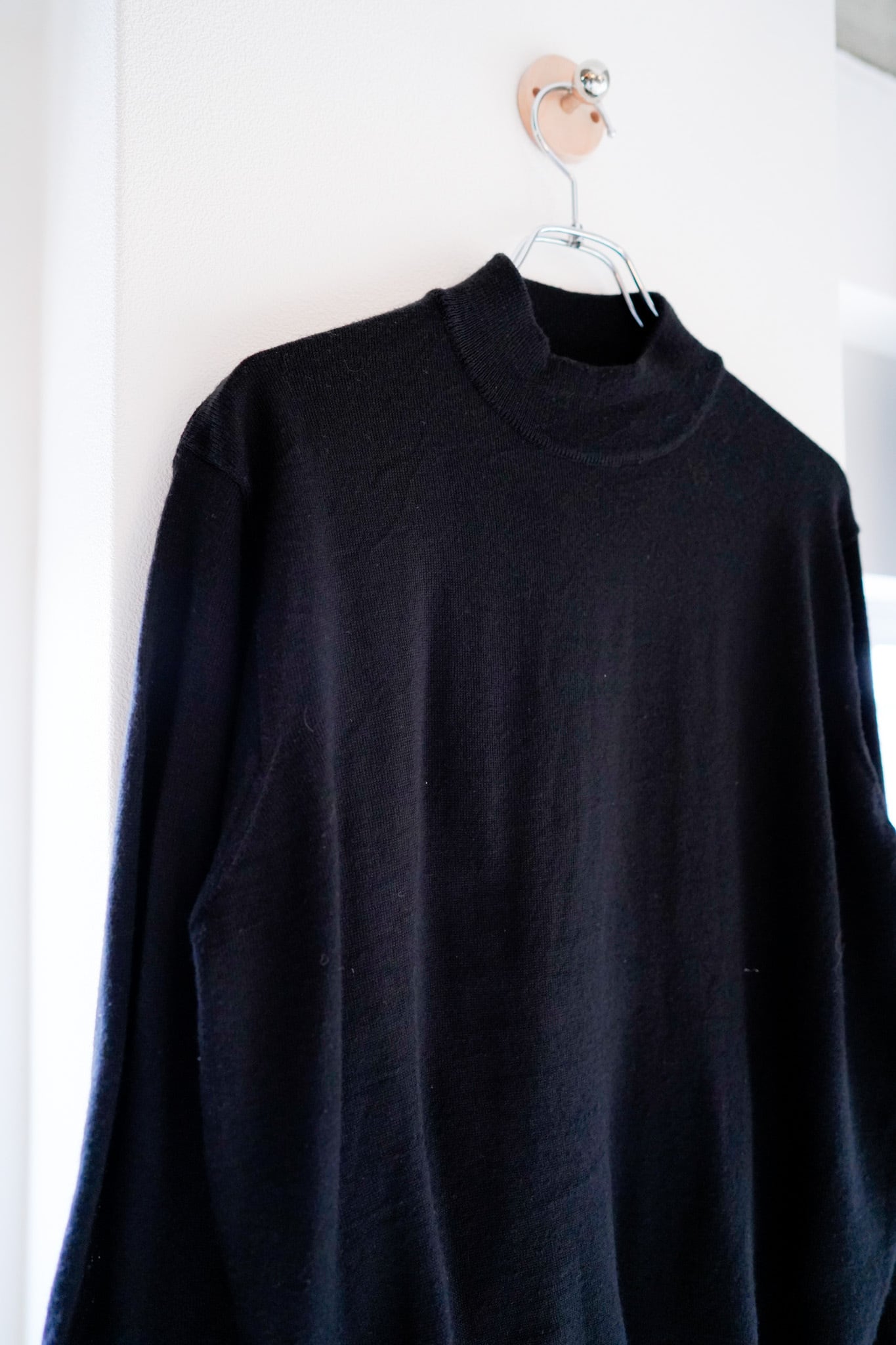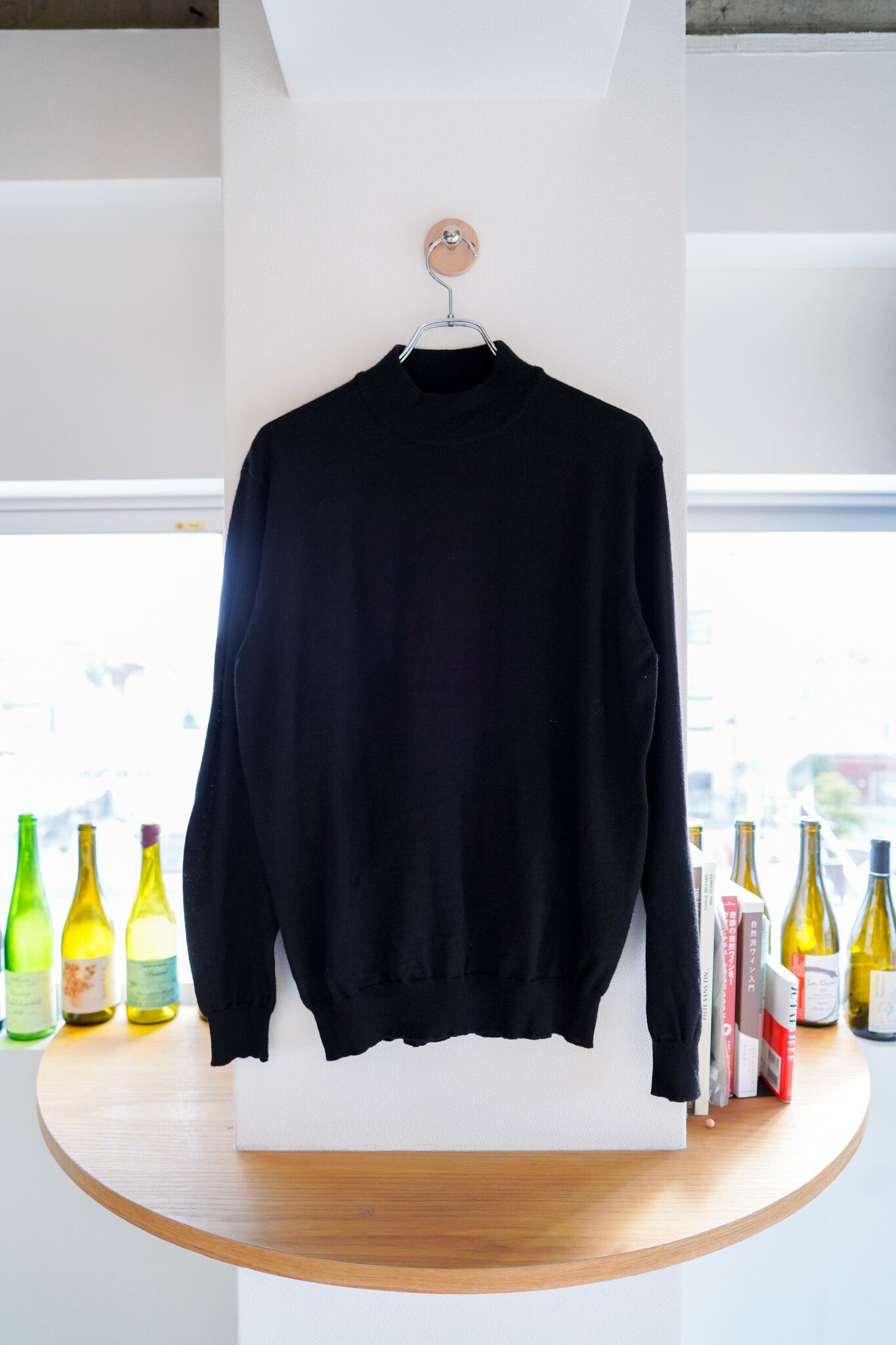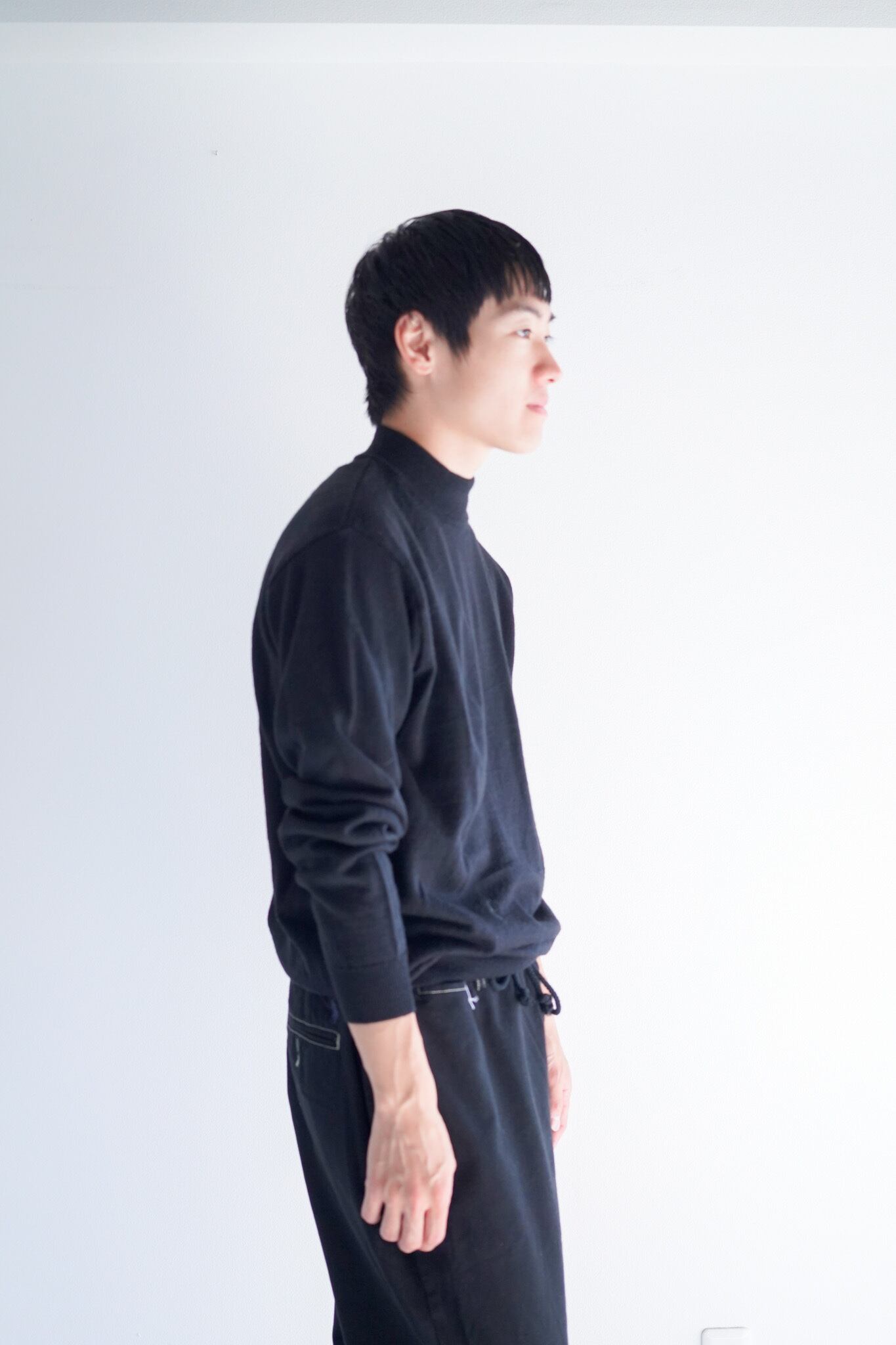 ブラックカラーのモックネック、汎用性の高さは間違い無いです。