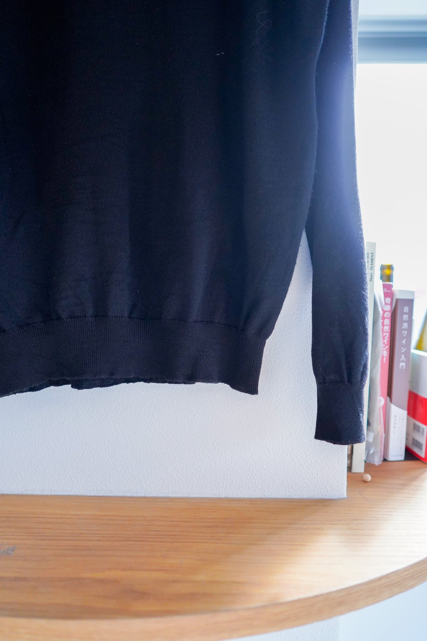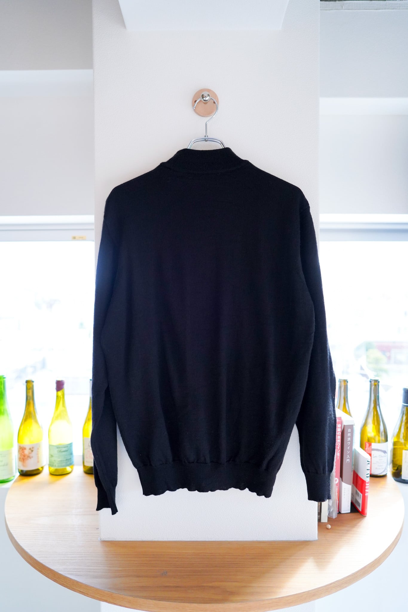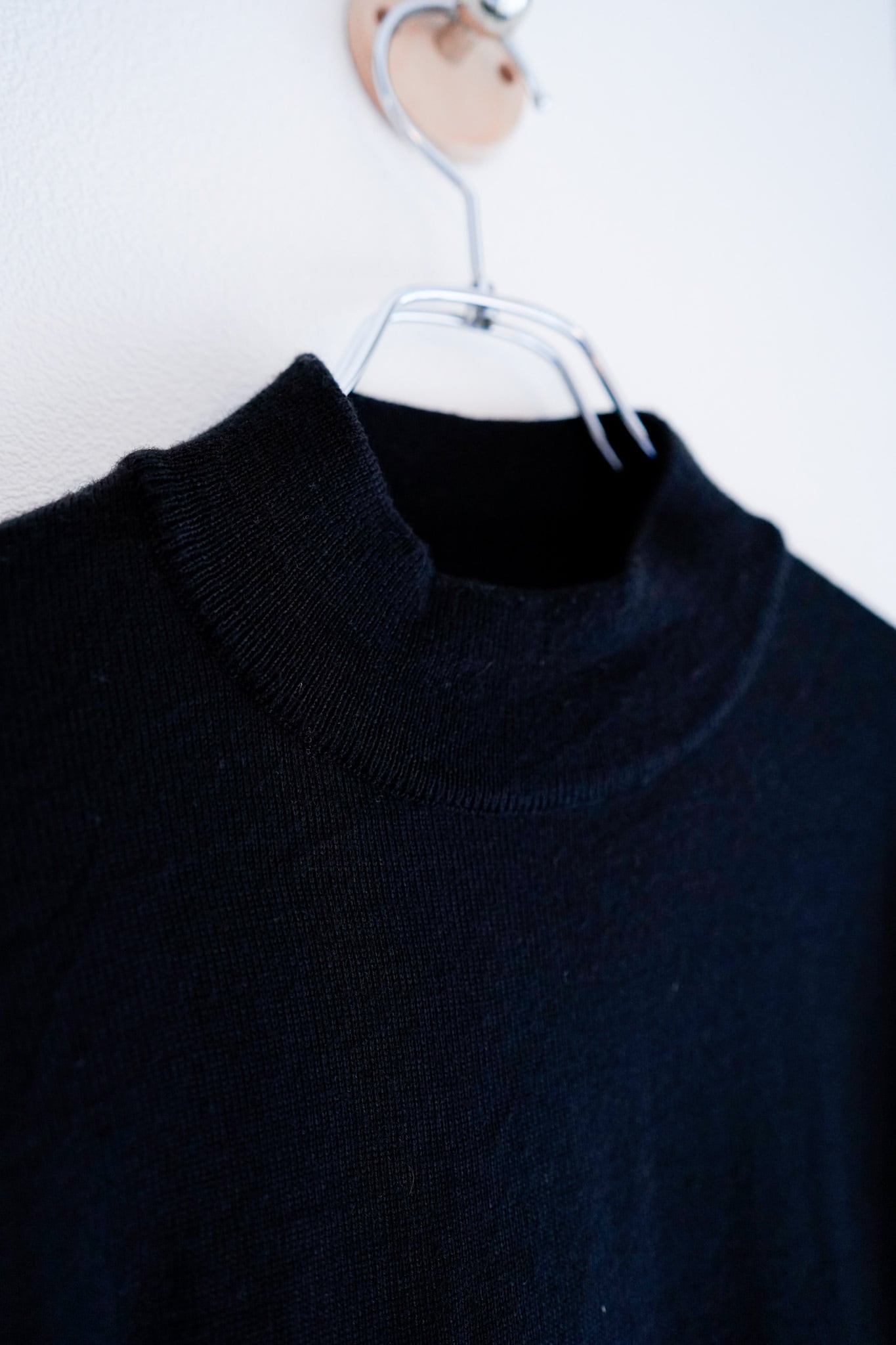 ブラックカラーのモックネック、汎用性の高さは間違い無いです。