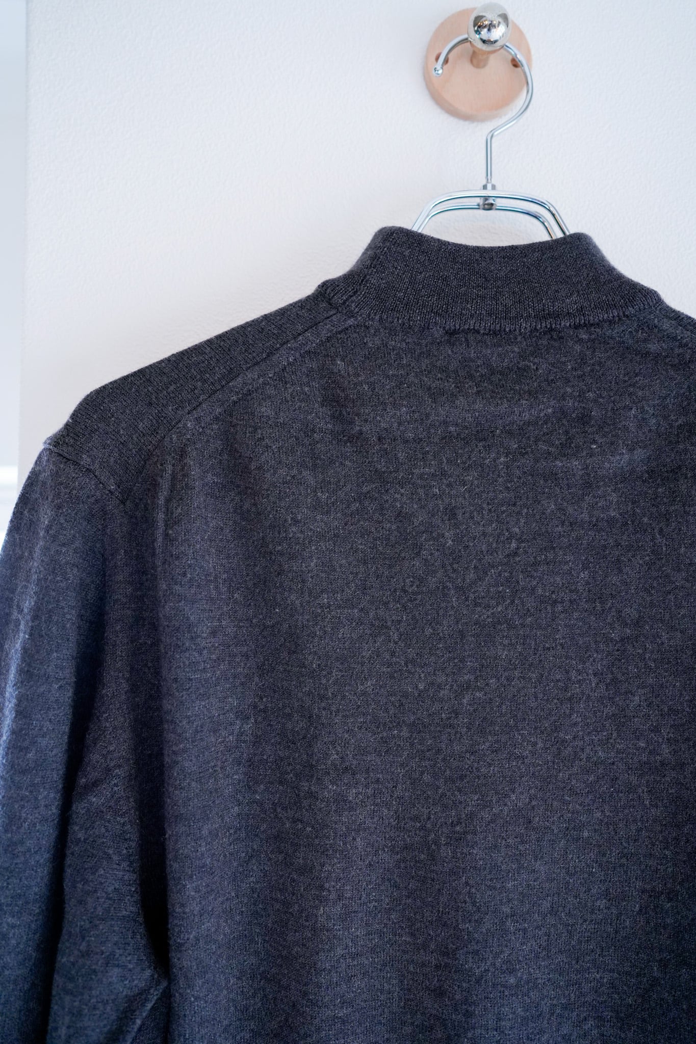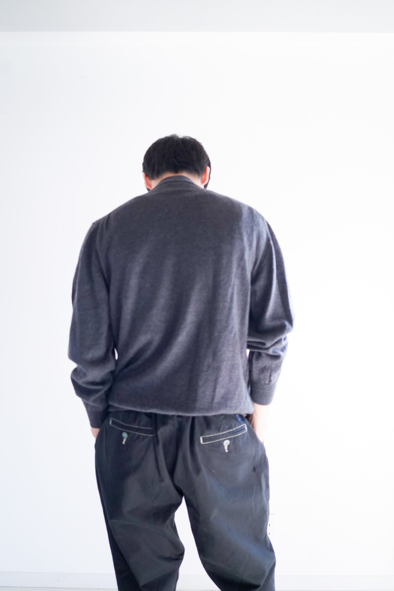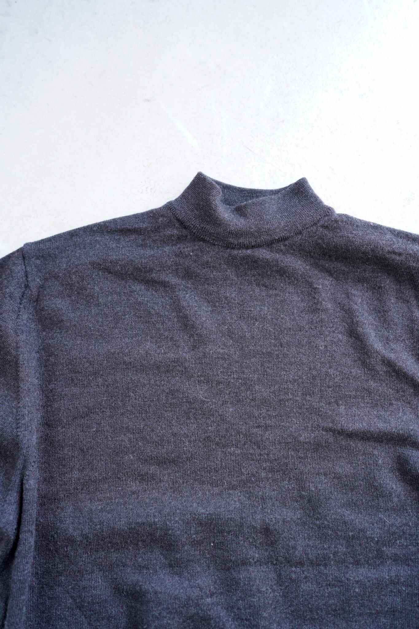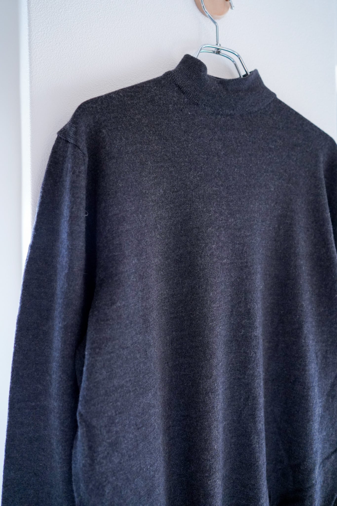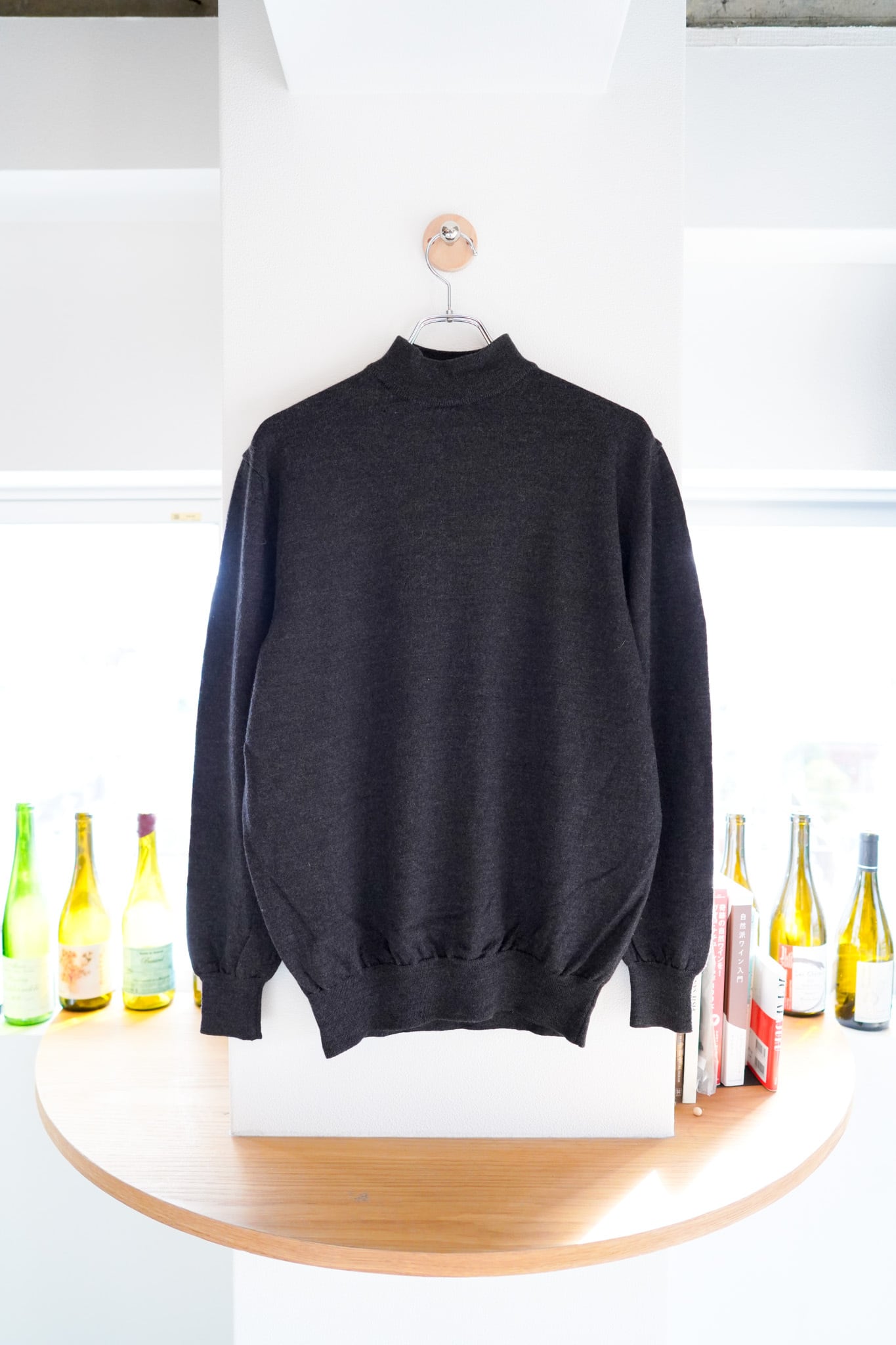 グレーカラーのモックネックとシンプルな一着だからこそ生地でお選びいただきたいアイテム。