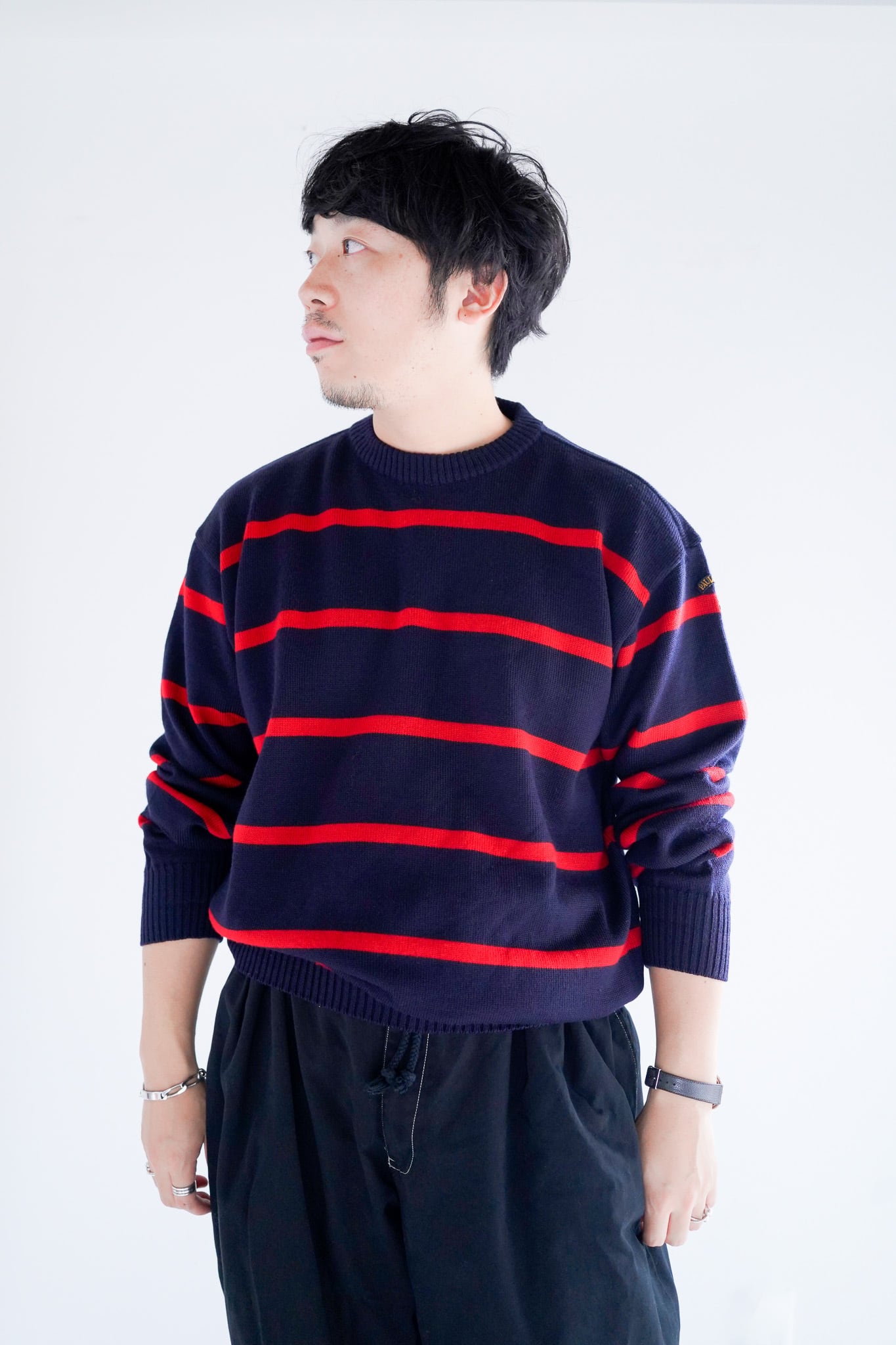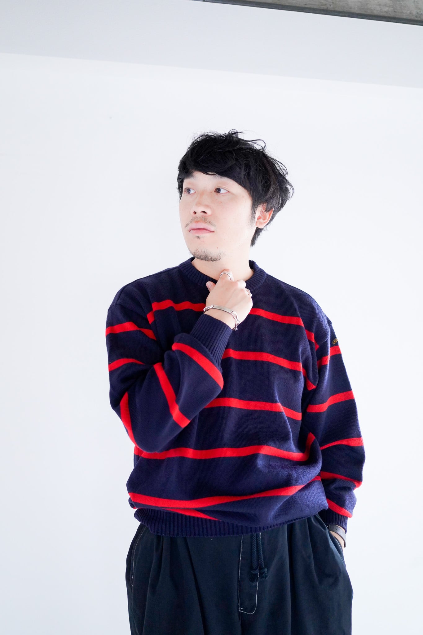 【1980-90s】"Paul & Shark" Border Design Cotton Sweater, Made in Italy/ 5-354