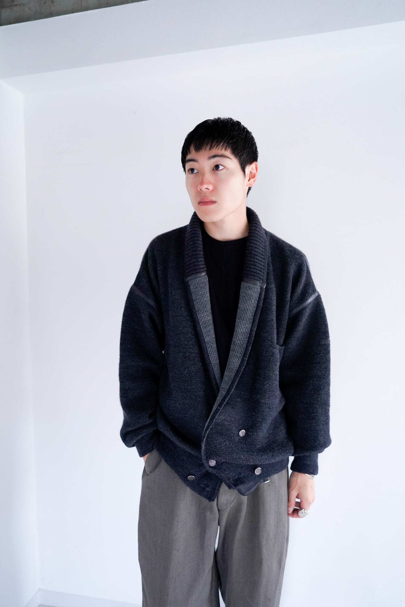 シンプルな配色の一着ですが、ダブルブレストにショールカラーとシルエットが変わっており、モードなスタイルでもお召しいただけます。