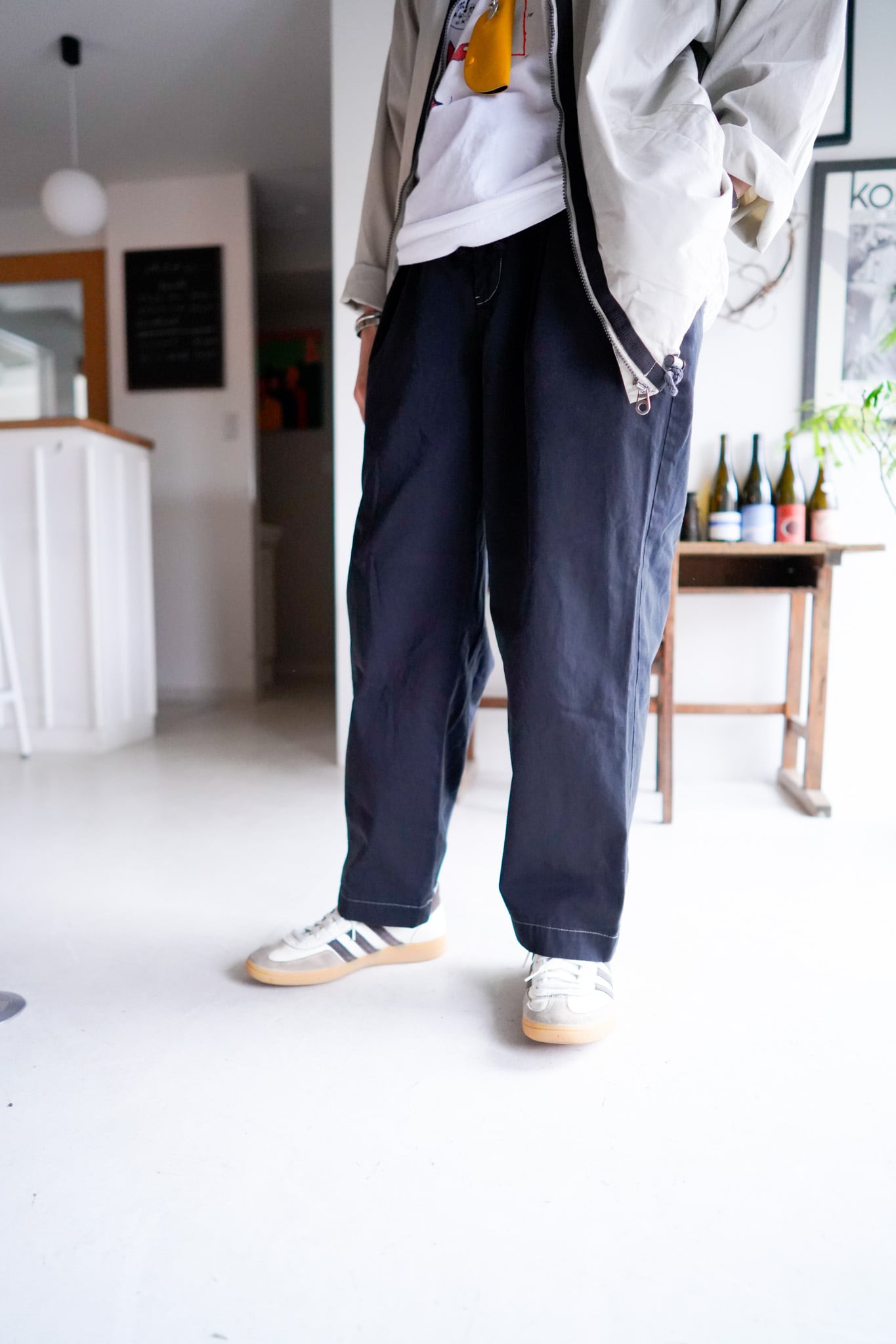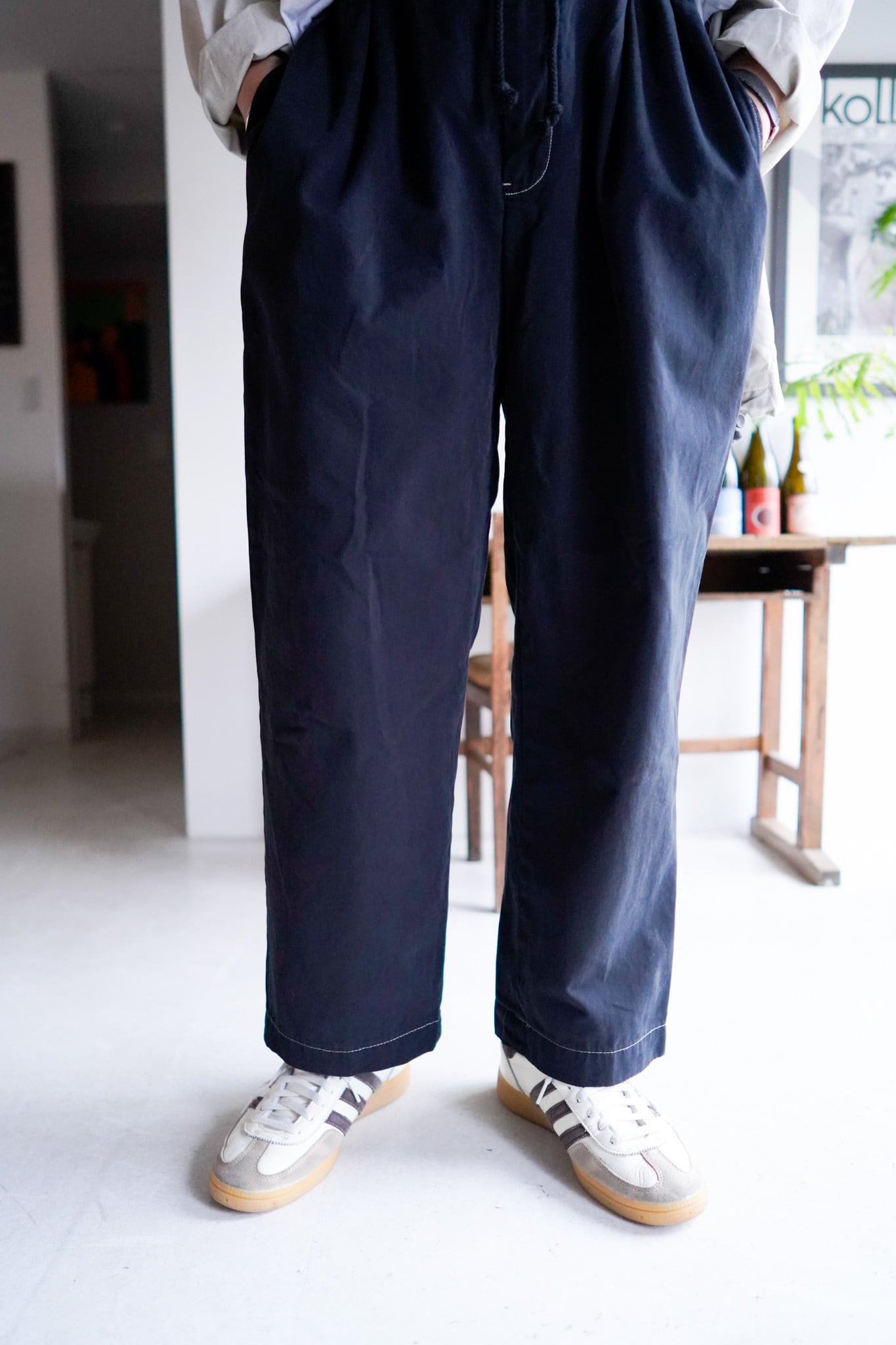 元々W36-38あたりのウエストサイズのラルフローレンチノを黒染めして収縮、その後ウエストにゴムとドローコードを入れた一本。