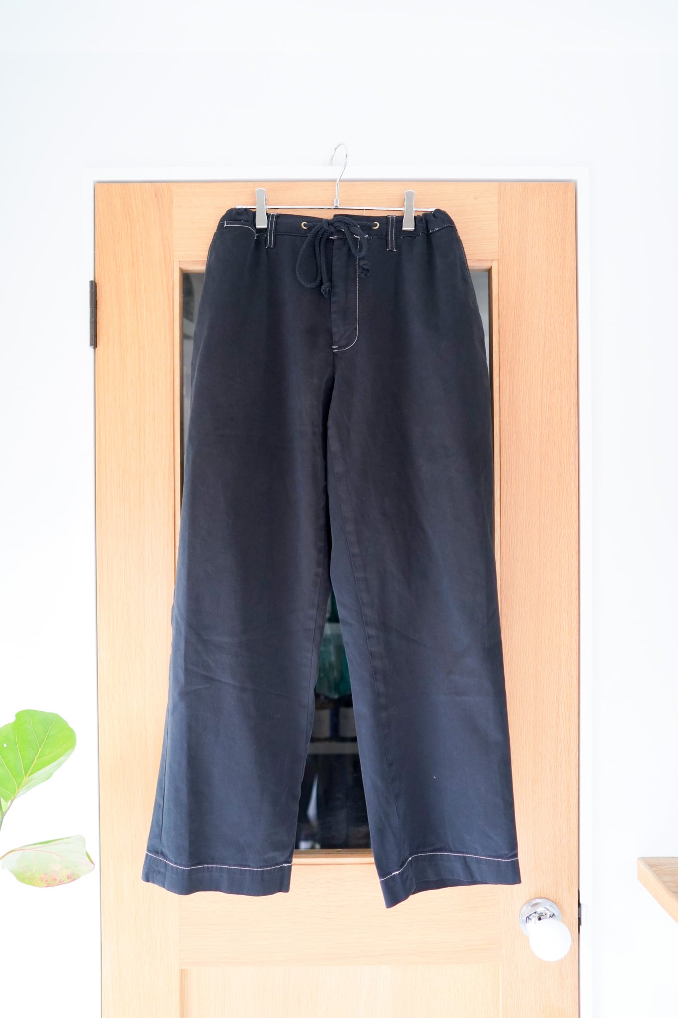 【1990-2000s, Remake】"Ralph Lauren, No-tack" Black Dyed Draw Cord Trousers/5-160