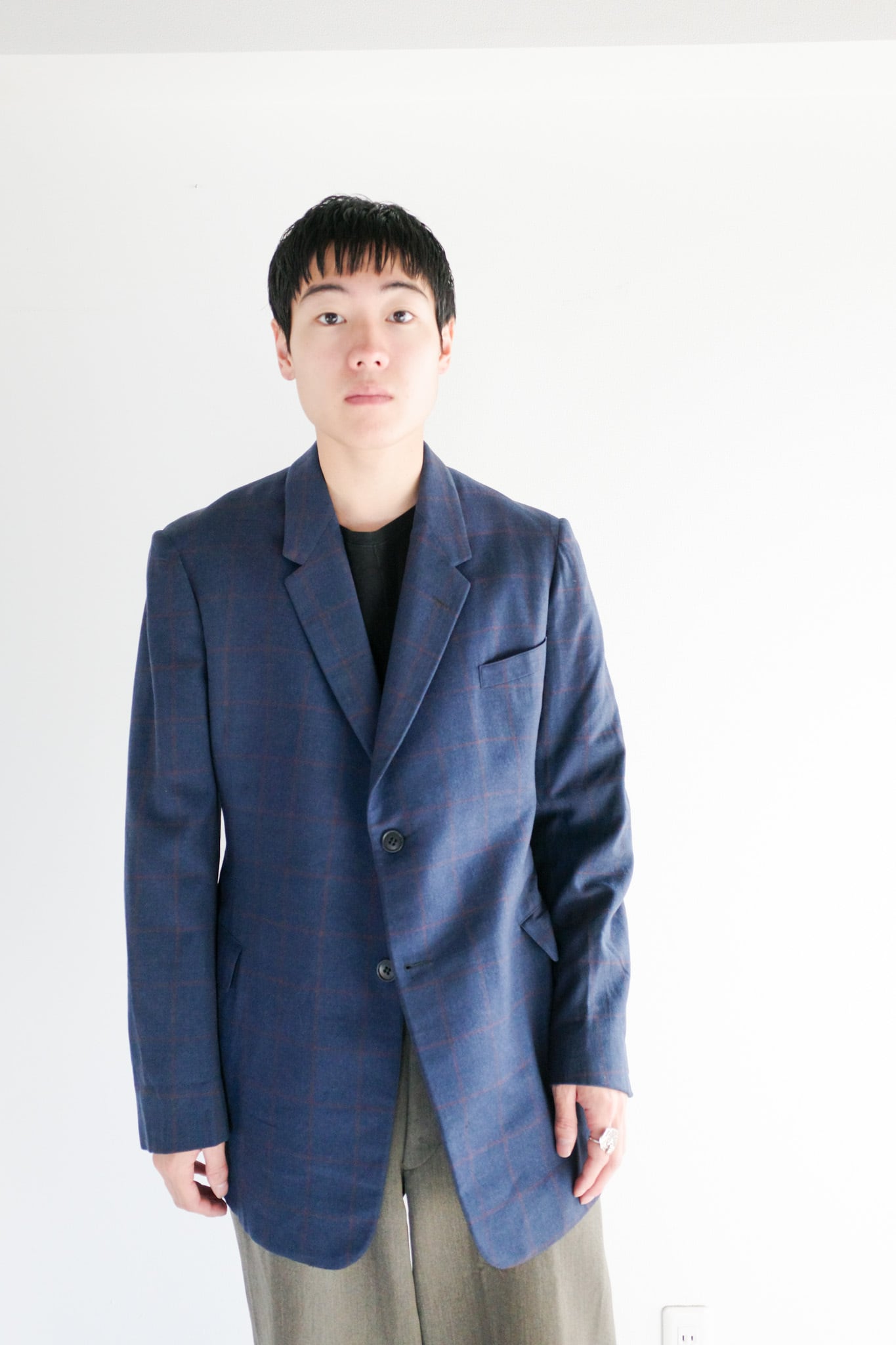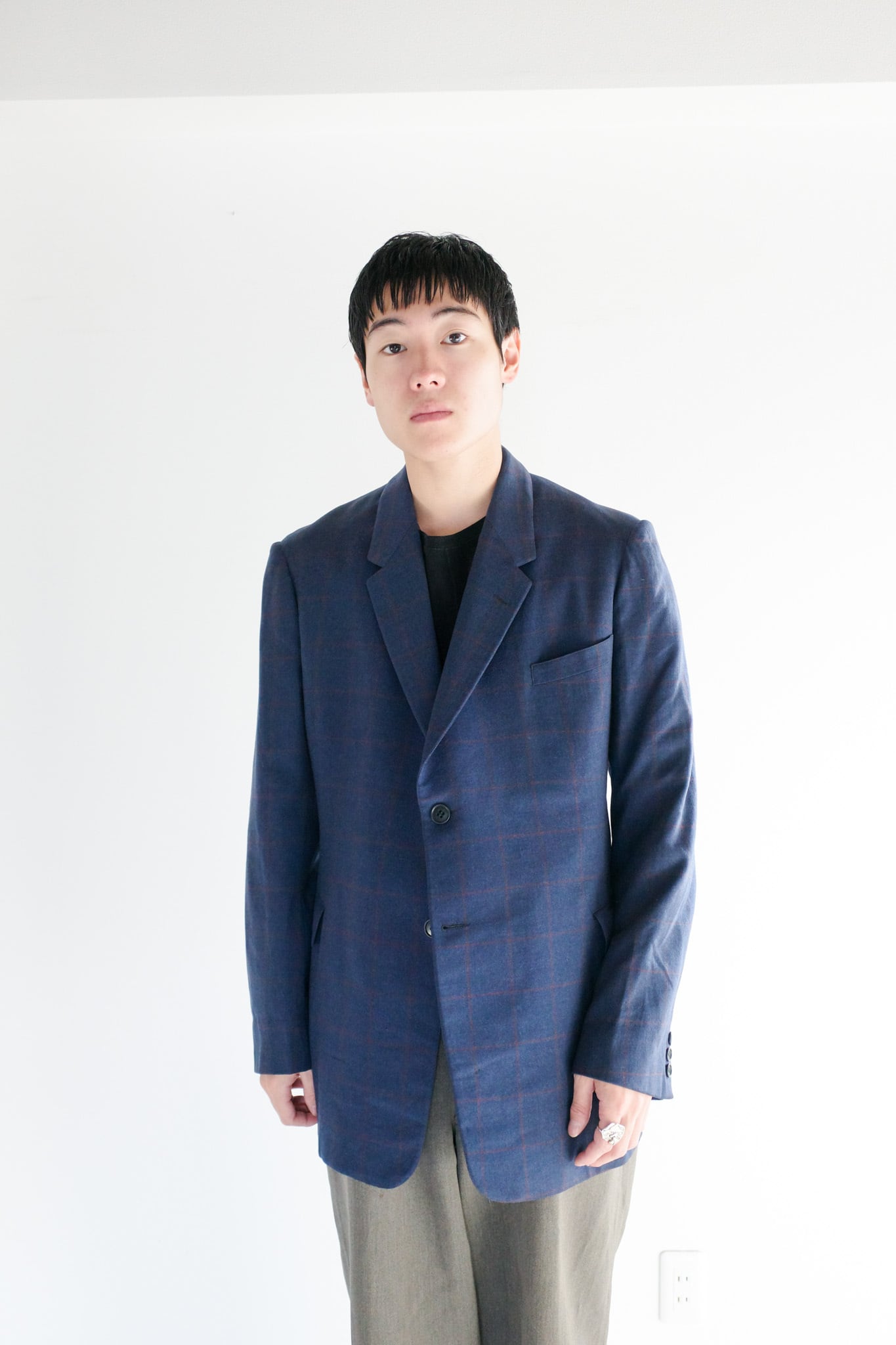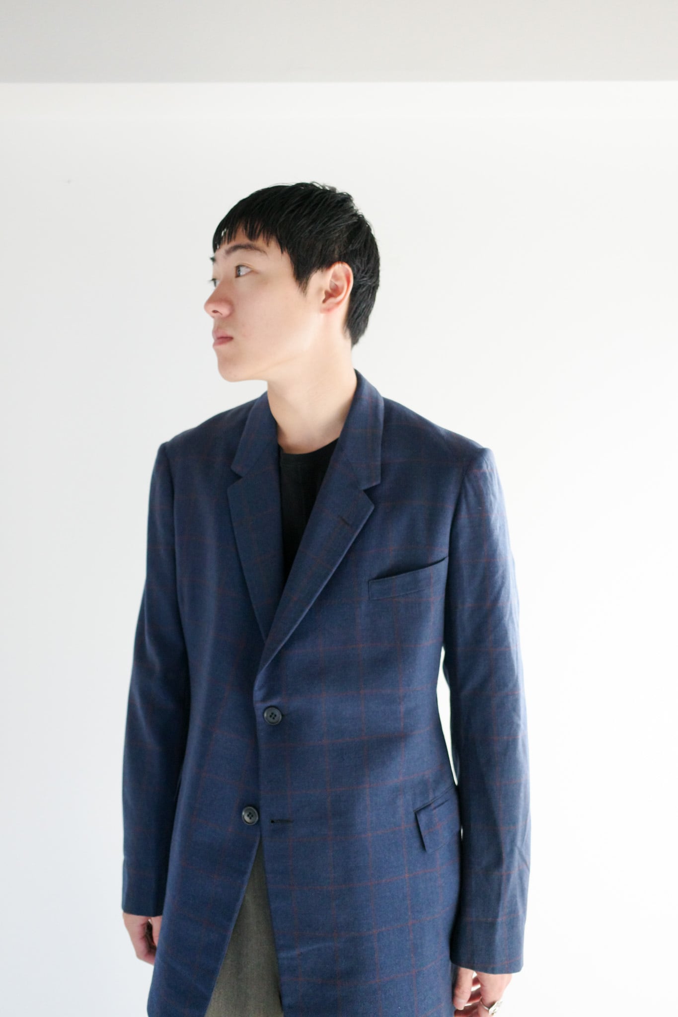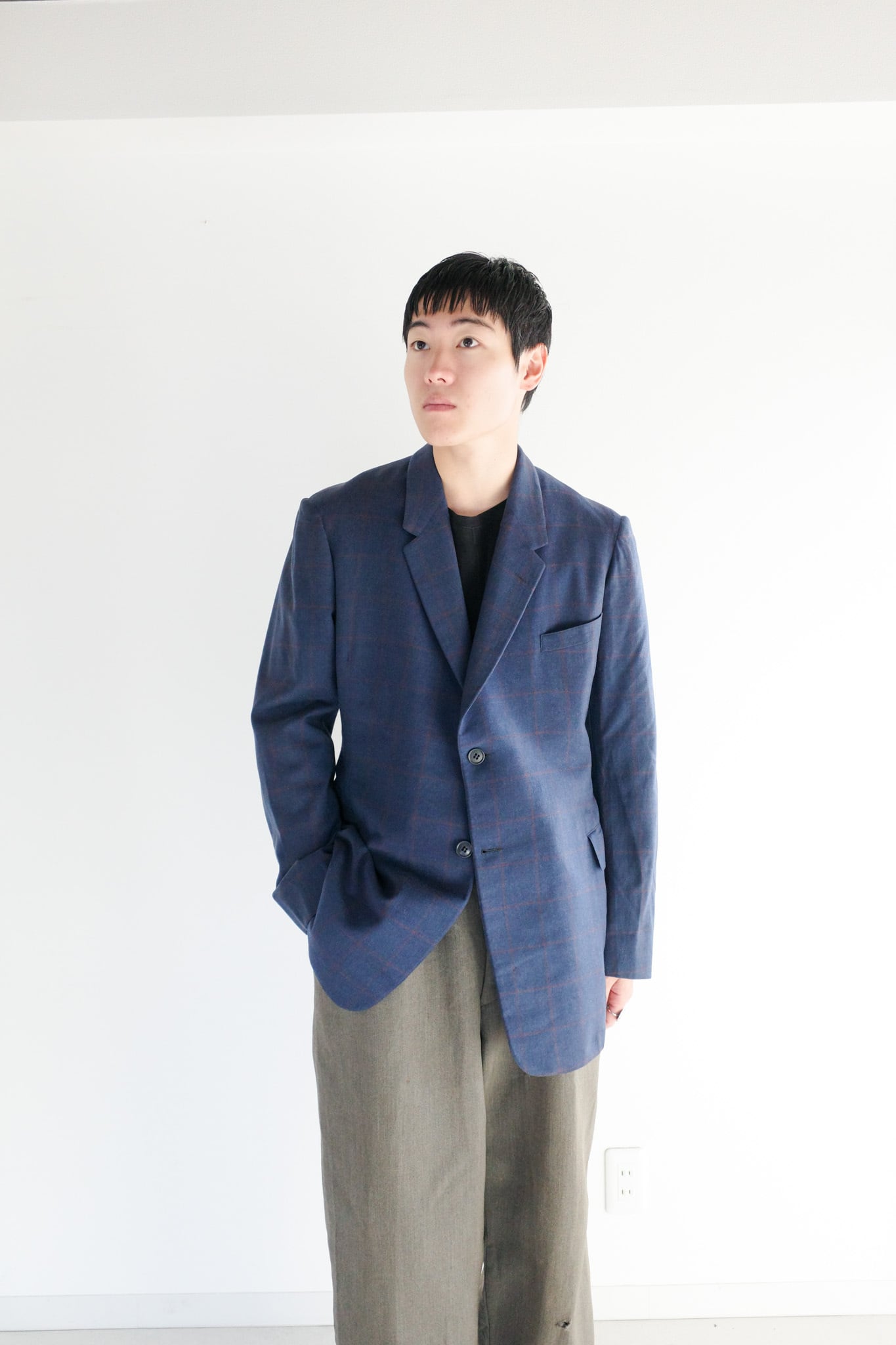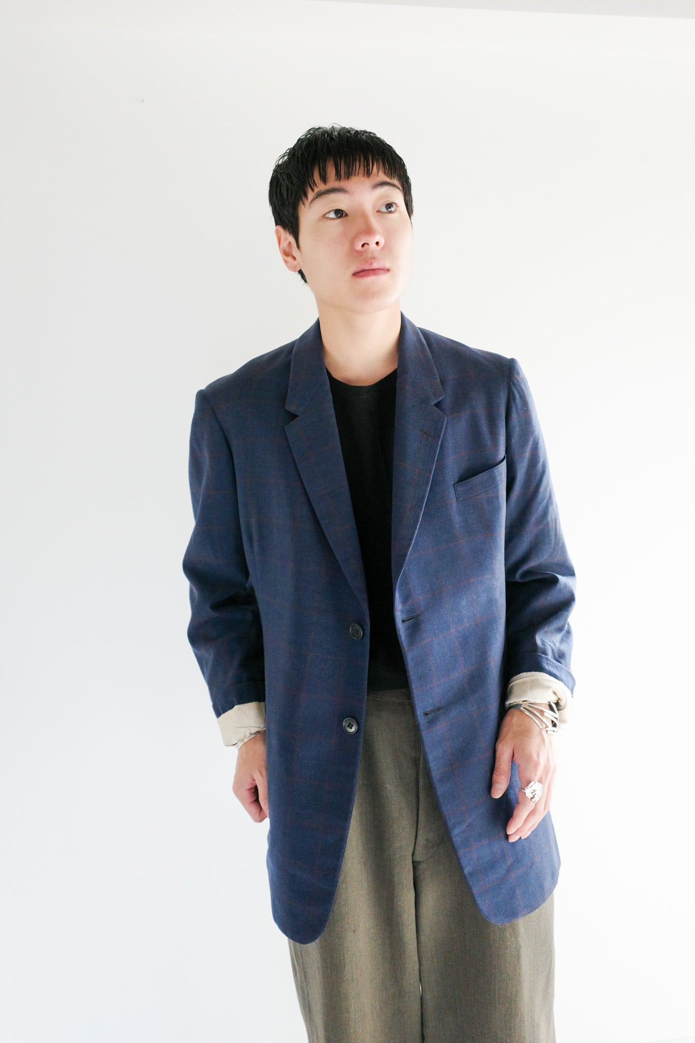 当店ではテーラードの概念を一新し、袖をまくりカットソーの上から羽織るカジュアルなスタイルも提案しております。