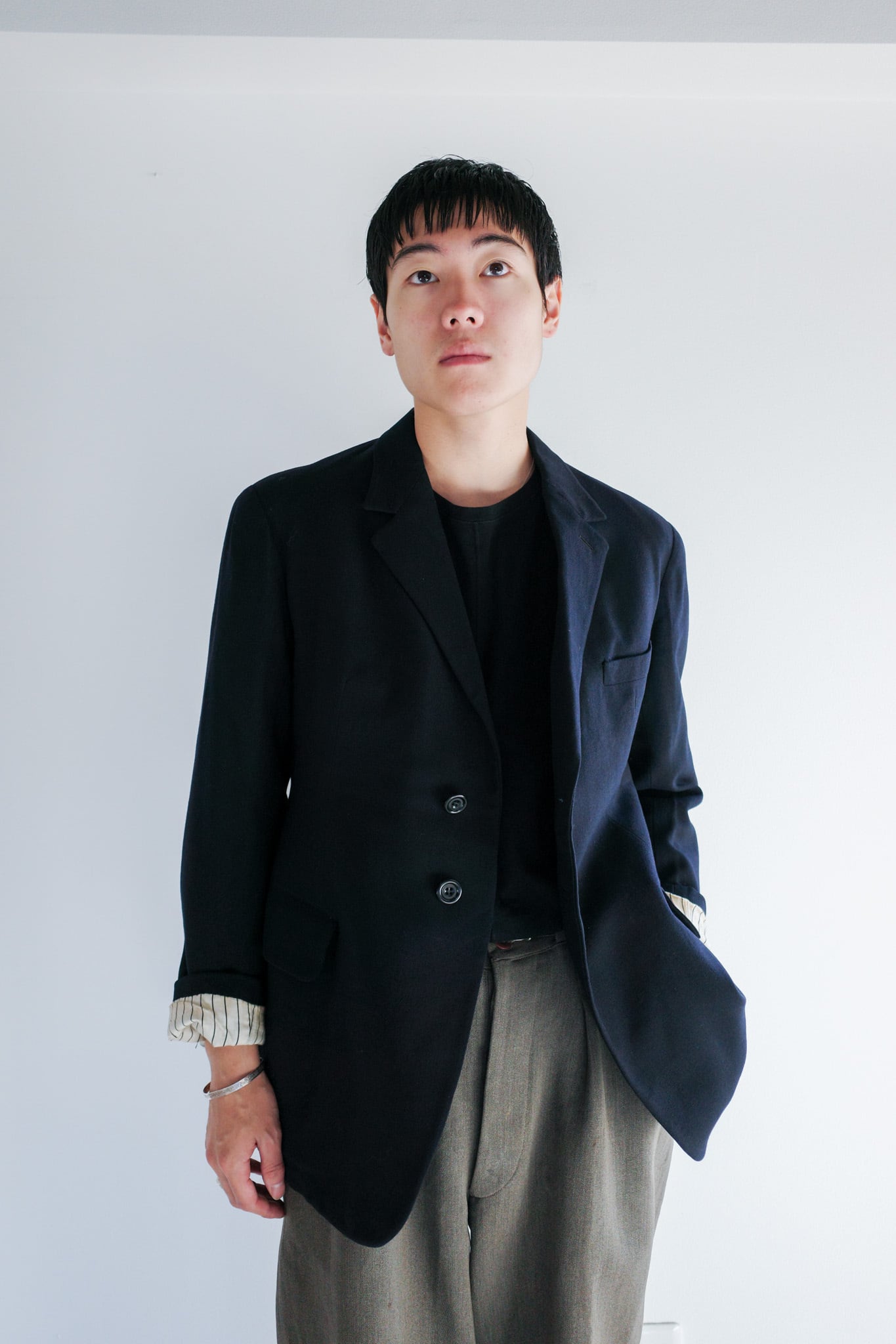 日常生活でのファッションだけでなく、友人の結婚式や格式高いレストランへ行く際など、人生の華やかなシーンにおいてお使い頂ける古い三揃のサックコート。