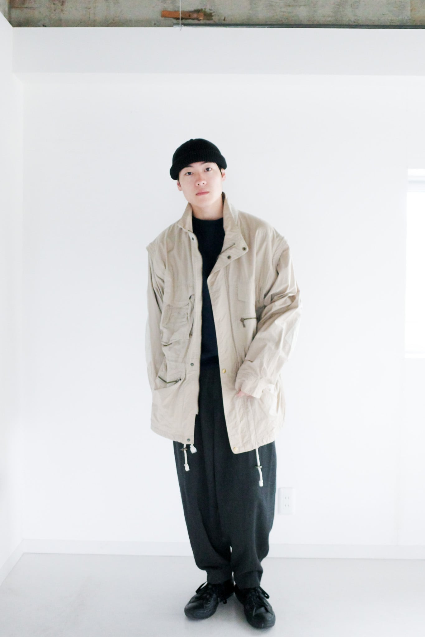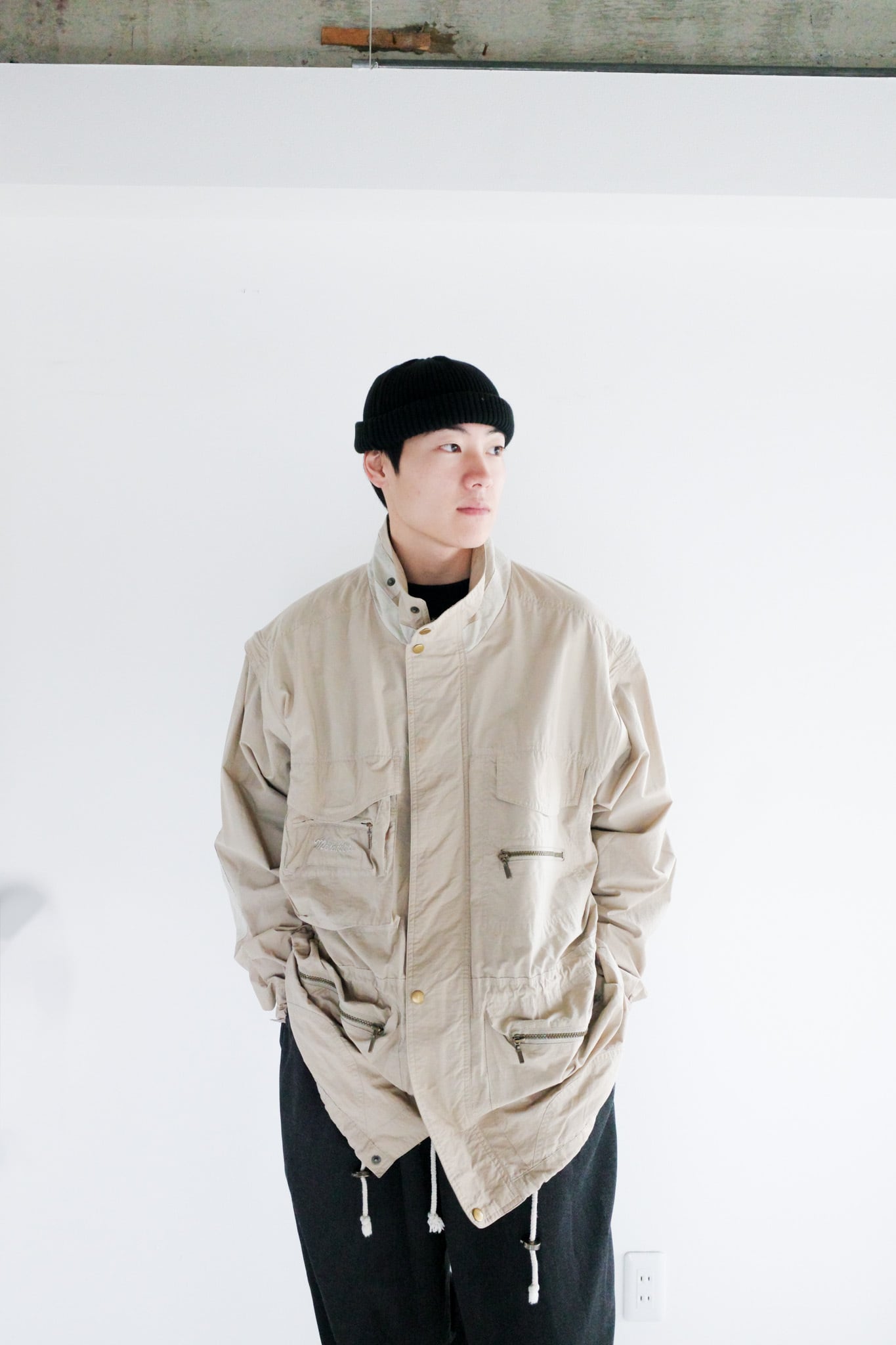 マルチポケットに取り外し可能な袖とまさにテクニカルな要素が漂う一着。
