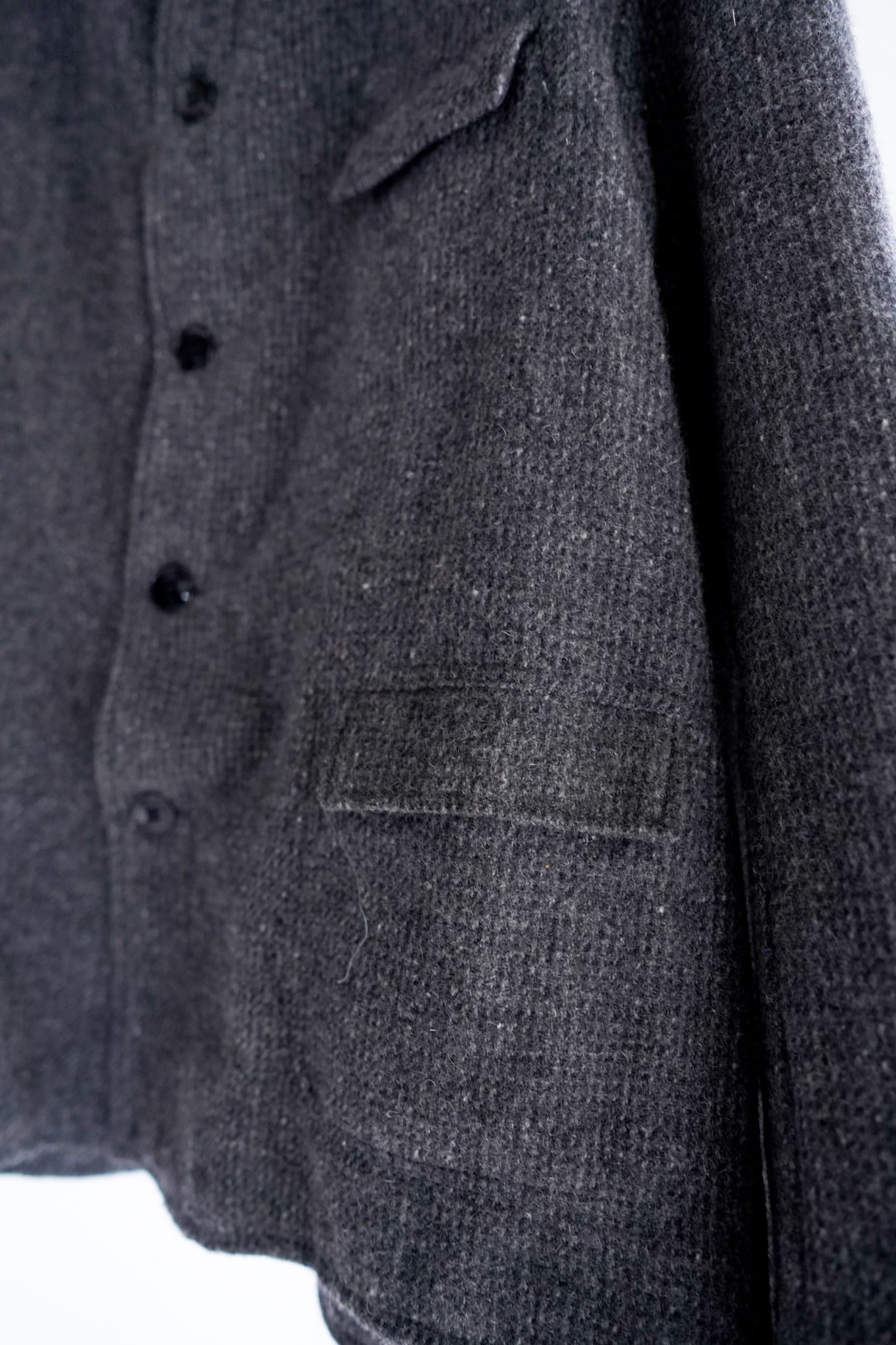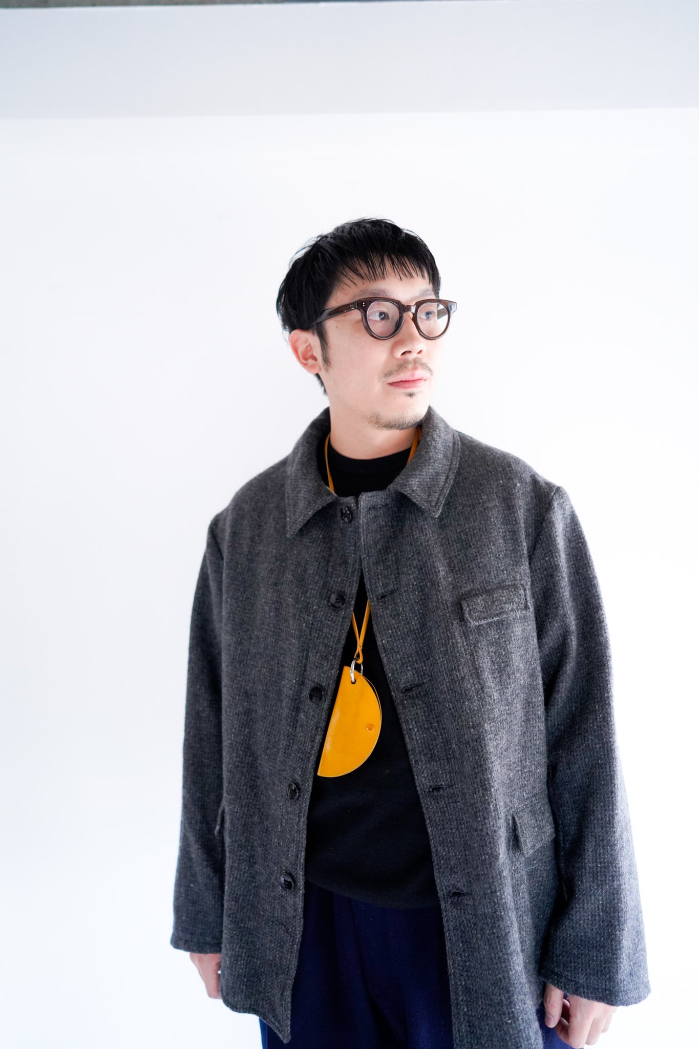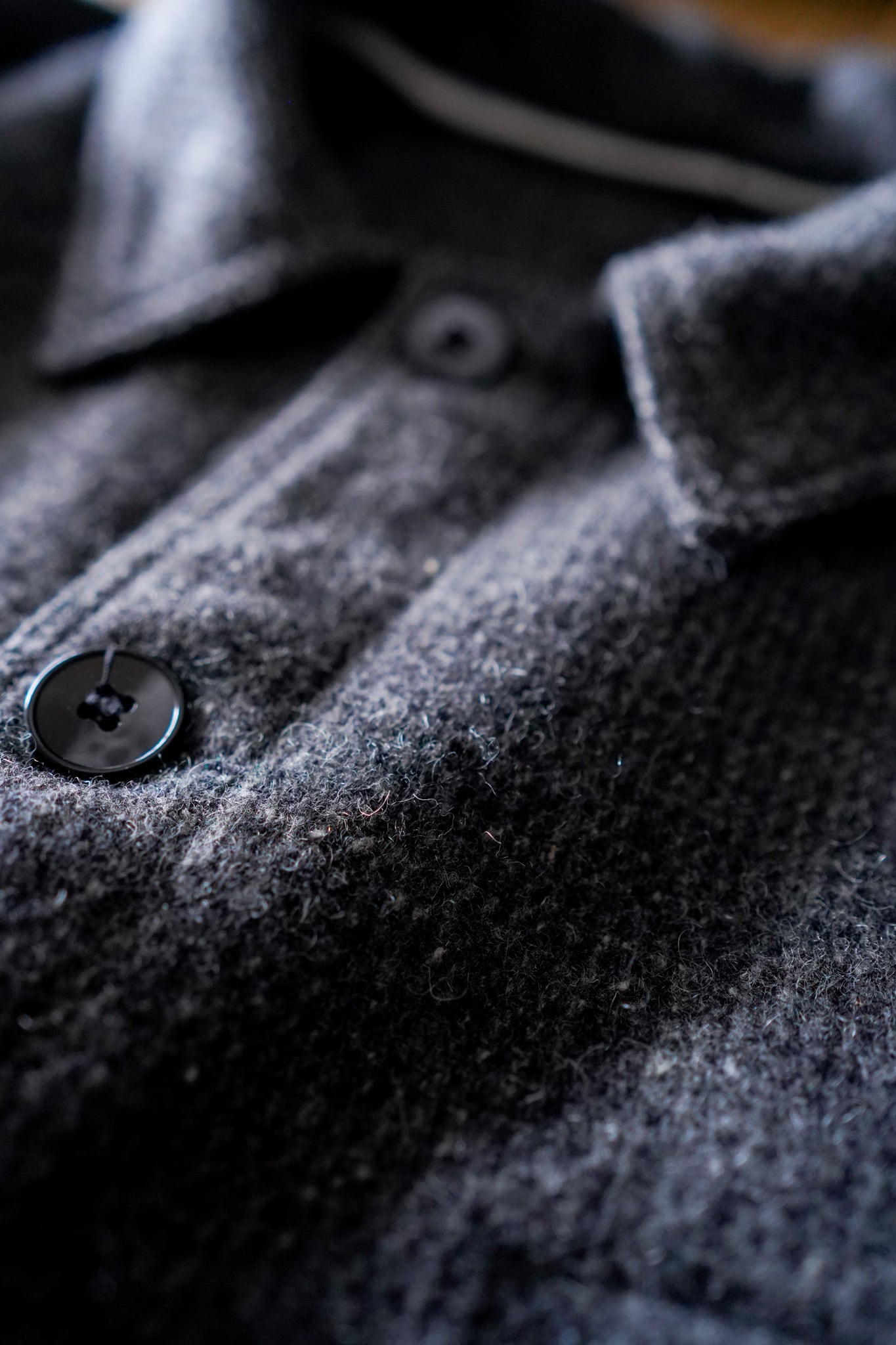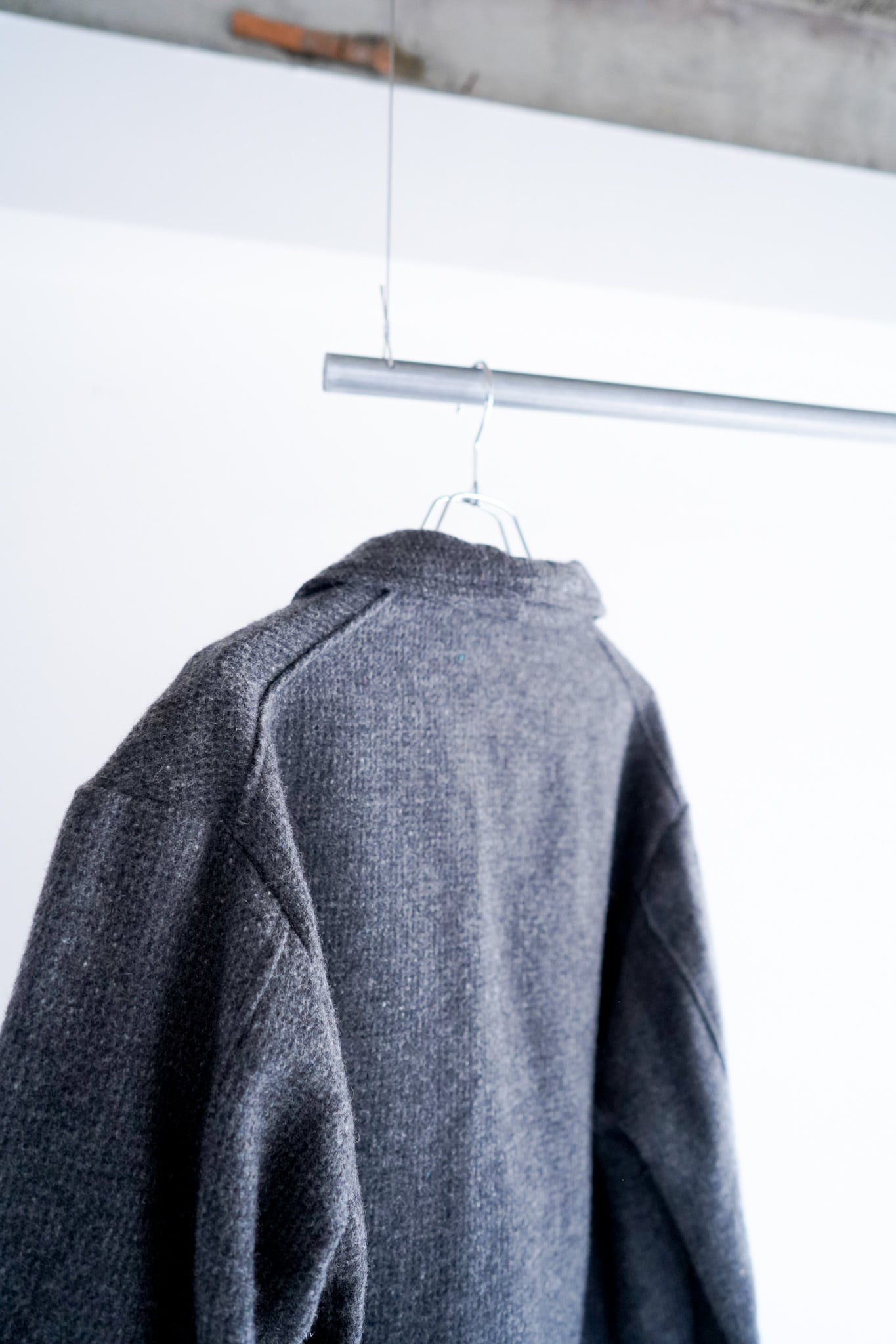 襟、ボタンとポケットの数・形など、フレンチワークジャケットにも似たディティールを備えてえおり、生地はフェルトのように優しくフワッとしたウール素材を使用しております。