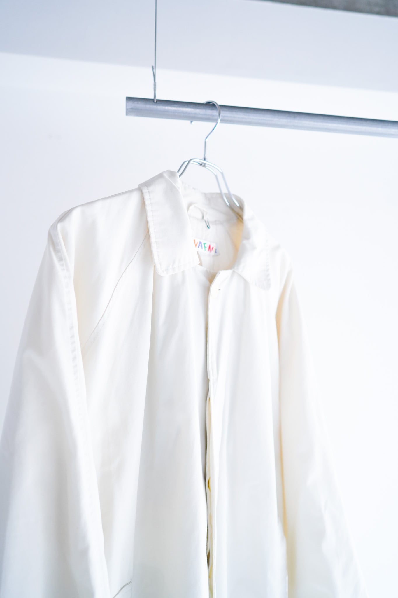 生地は表記が消えてしまっておりますが、化繊混の軽やかな生地にホワイトカラーが新鮮な印象。