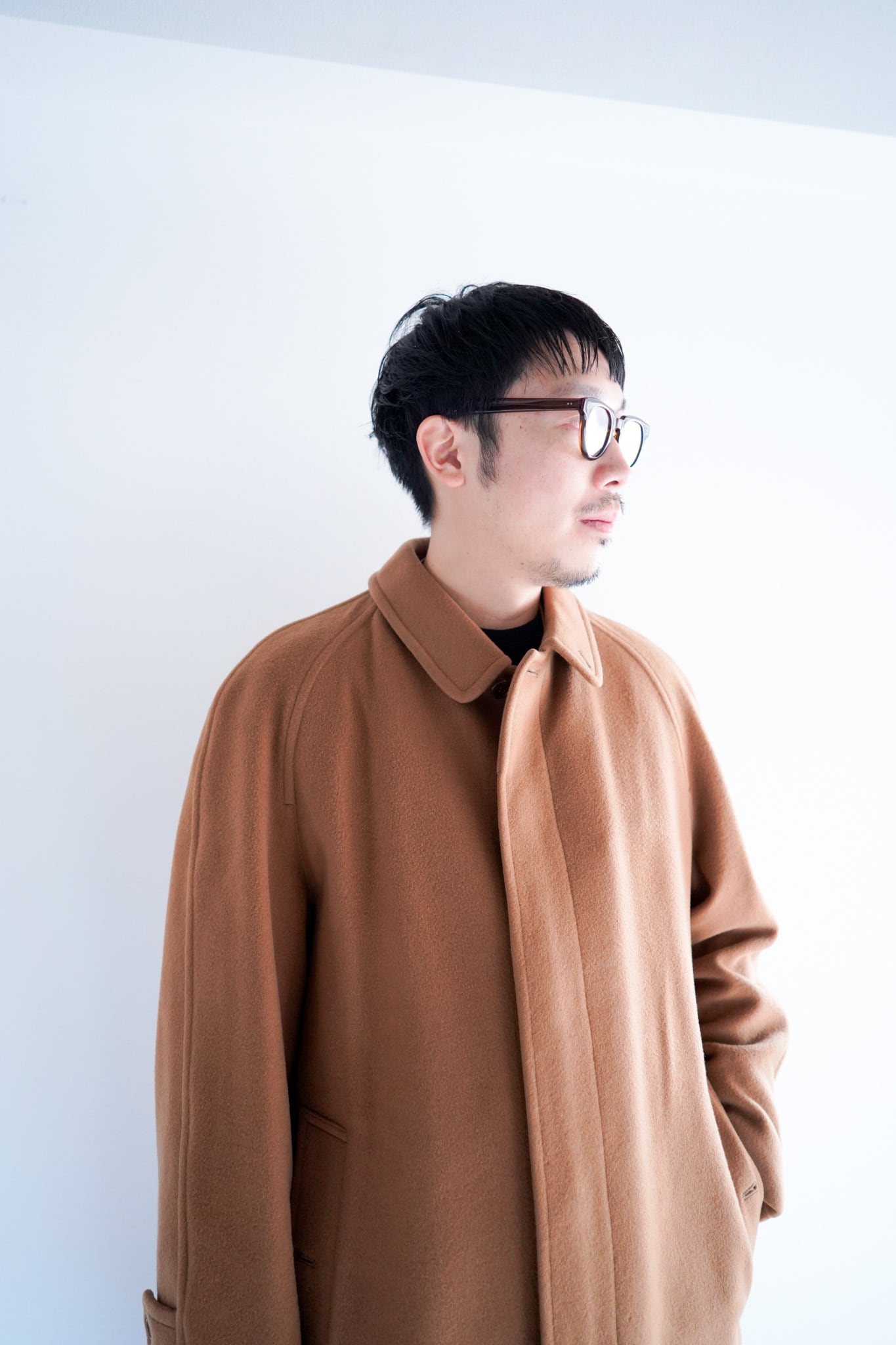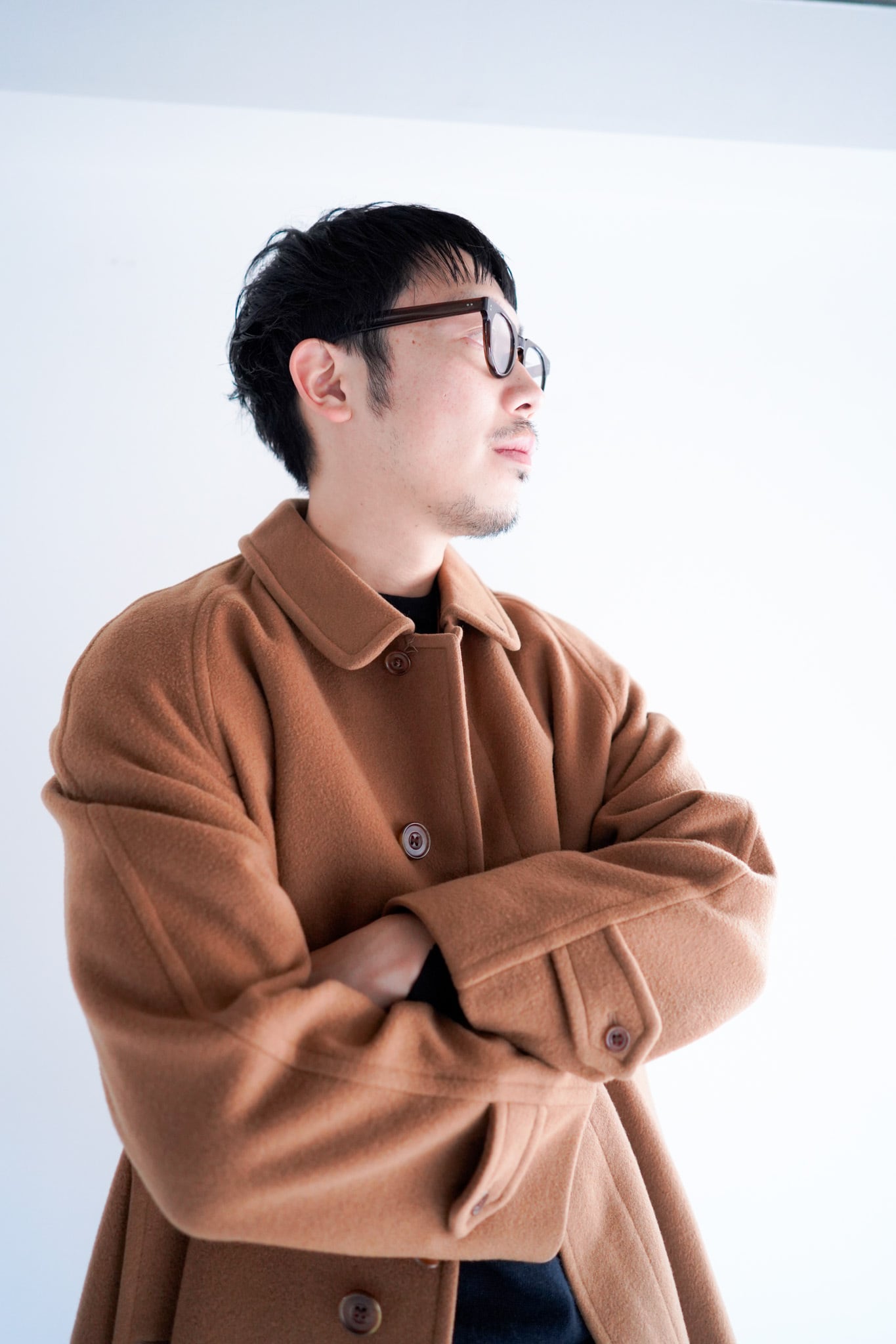 身長175−180cmほどの方でジャストサイズ、170cm前後の方にもオーバーサイズのコートとして提案したい一着です。
