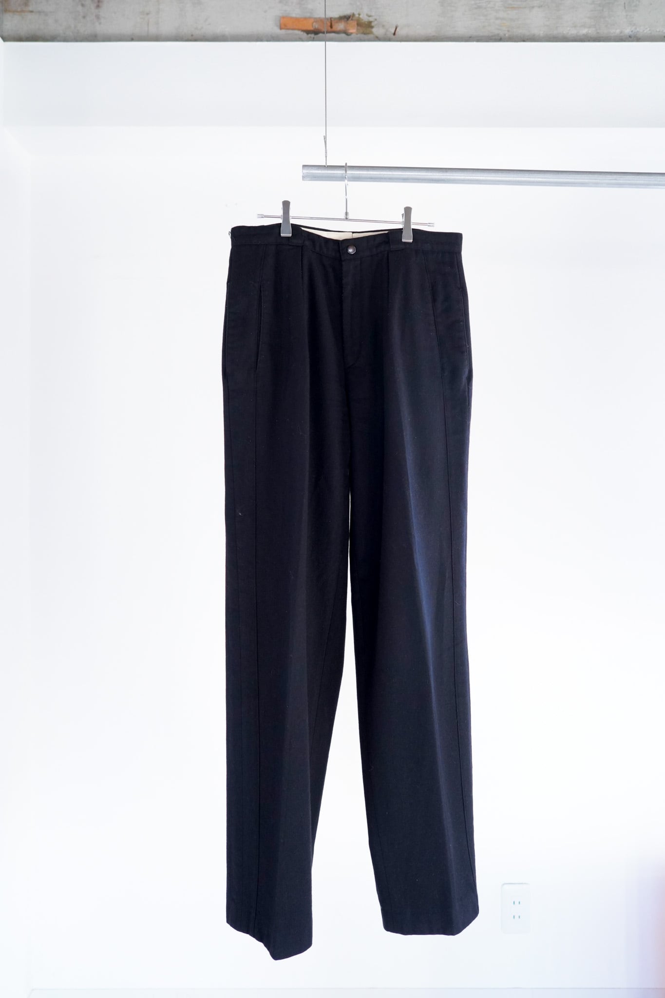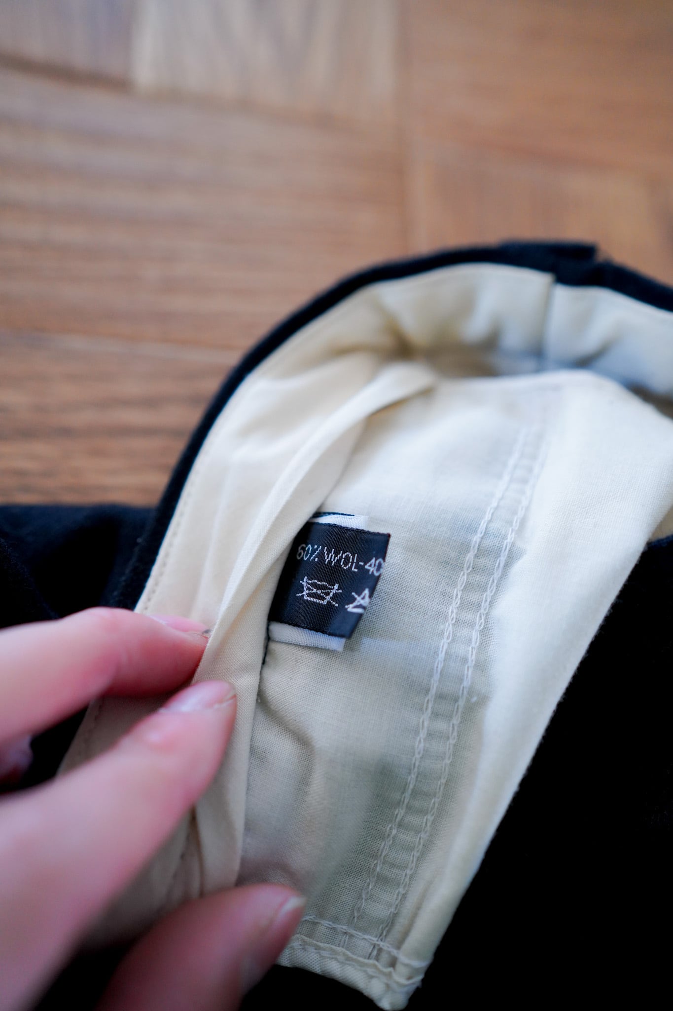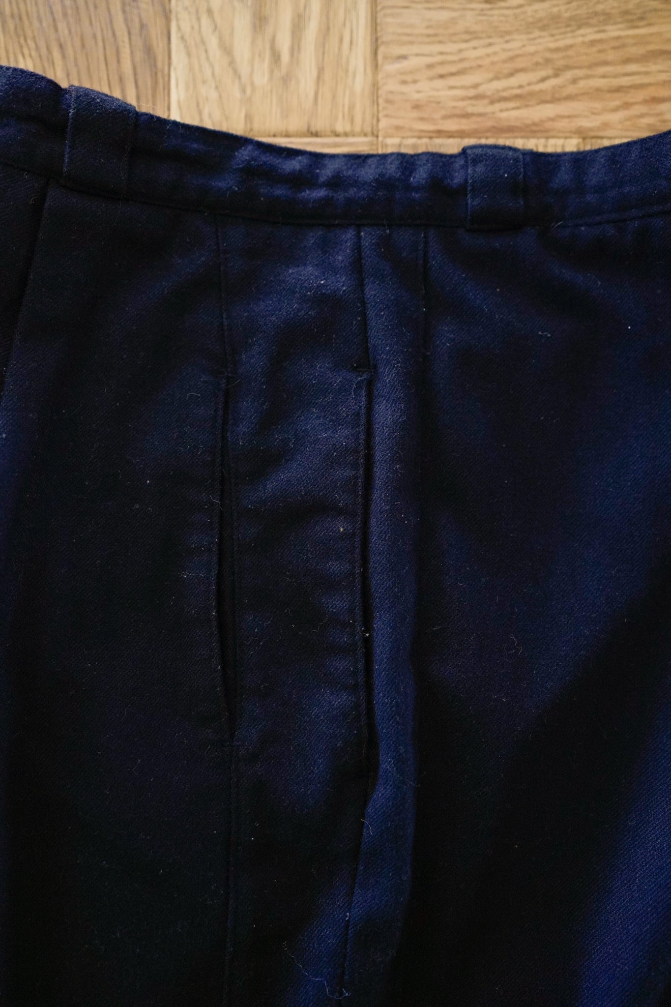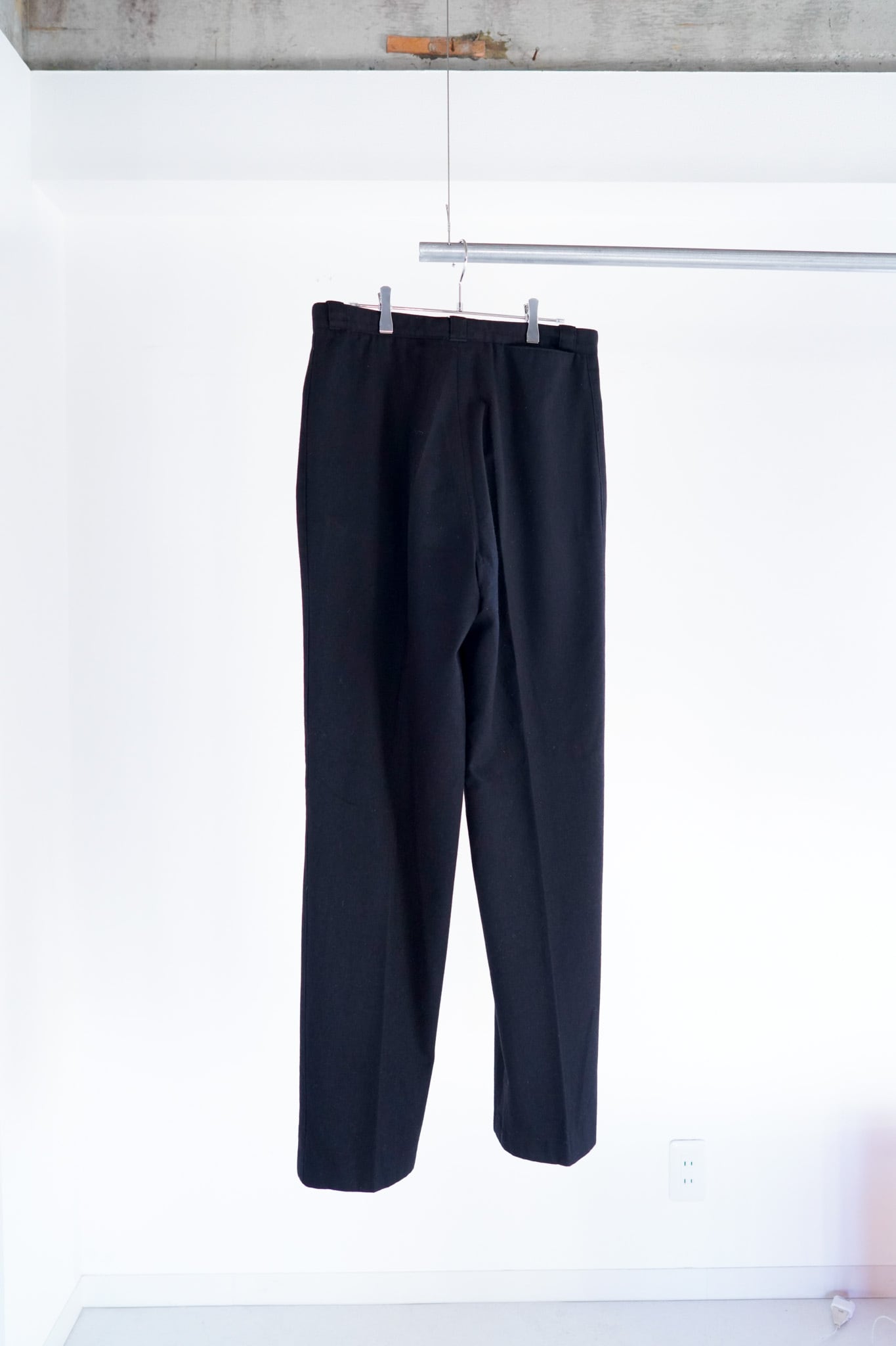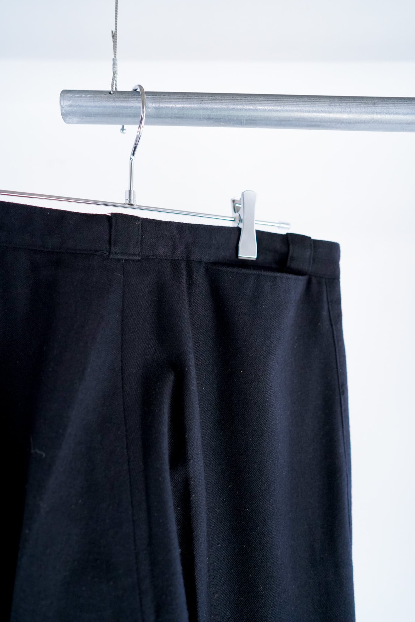 一見シンプルなブラックカラーのウールパンツに見えますが、かなり凝ったディティールが魅力的な一本。