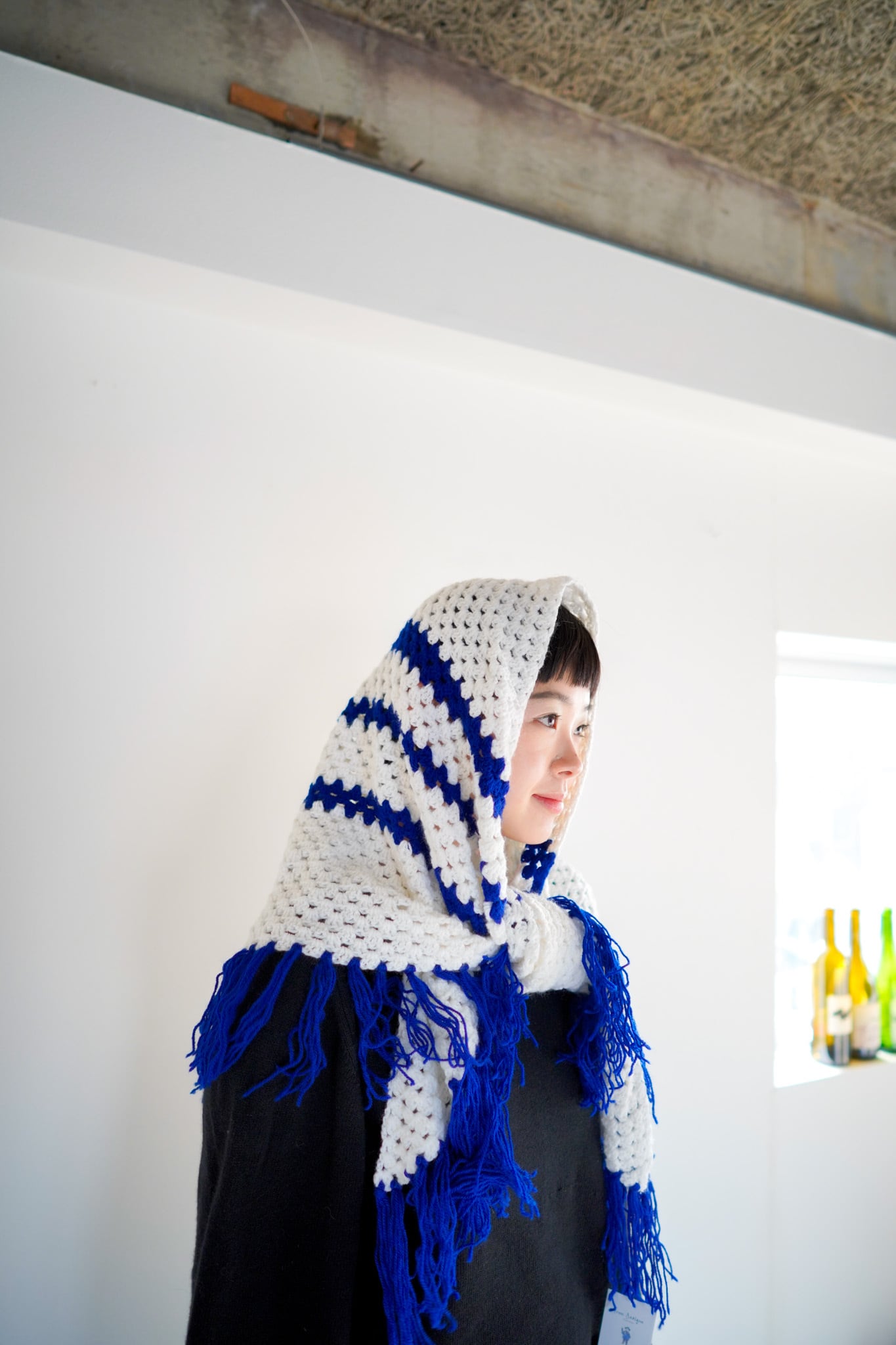 肩にかけるのも良いですし、頭から巻いても、また腰に巻いてコーディネートに色を差し込んでも良さそうです。