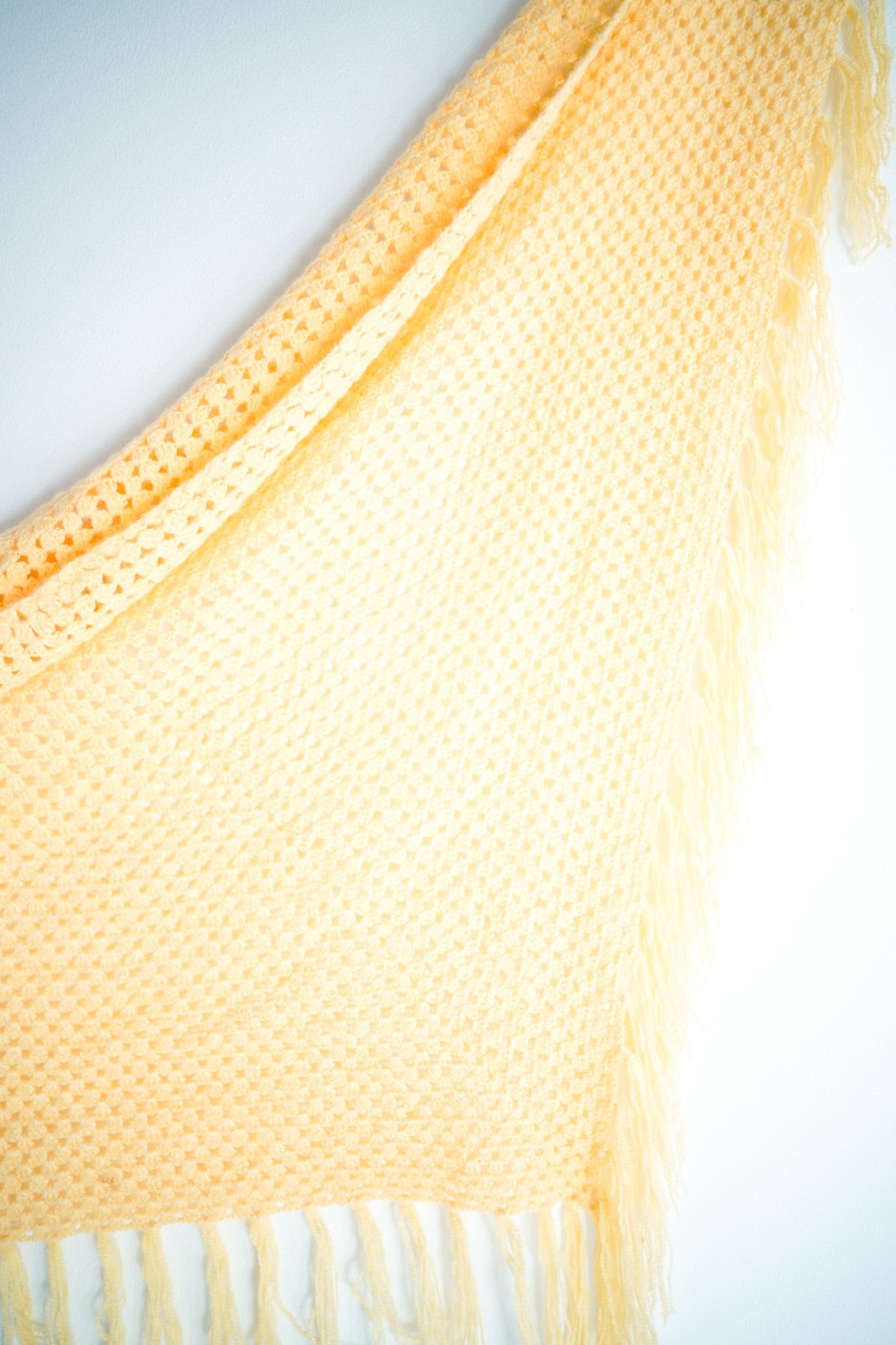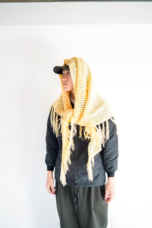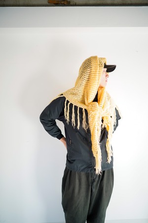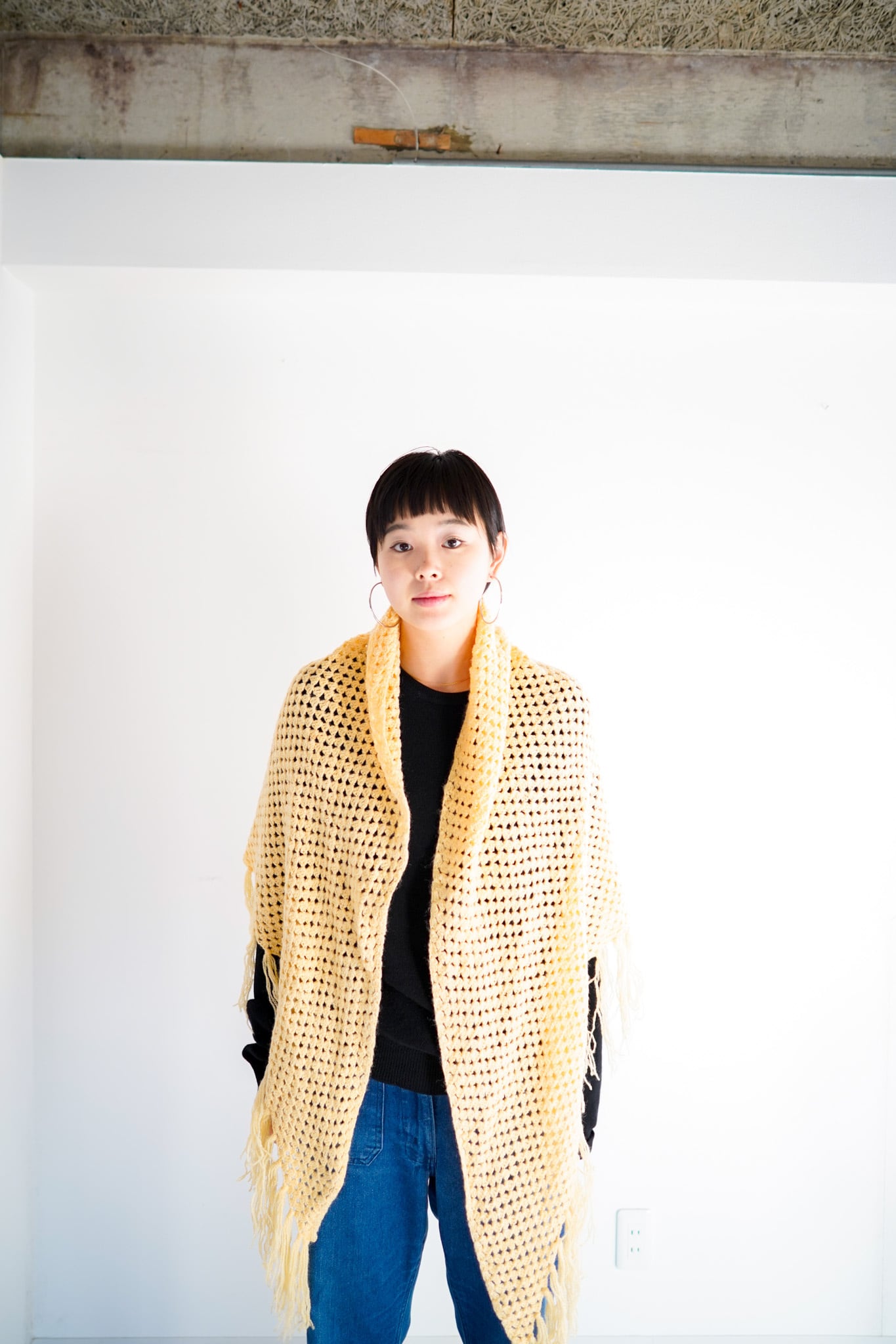 肩にかけるのも良いですし、頭から巻いても、また腰に巻いてコーディネートに色を差し込んでも良さそうです。