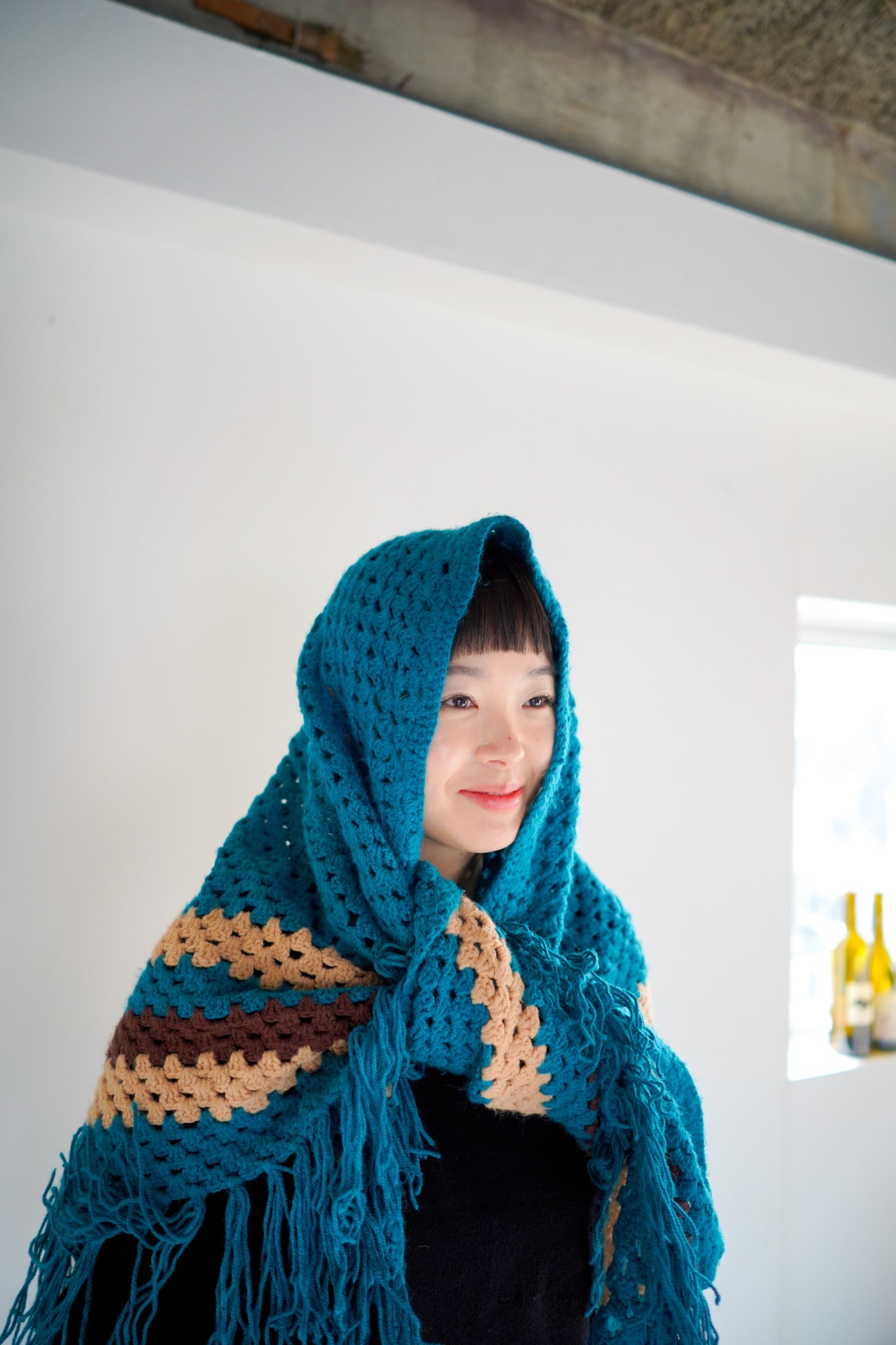 肩にかけるのも良いですし、頭から巻いても、また腰に巻いてコーディネートに色を差し込んでも良さそうです。