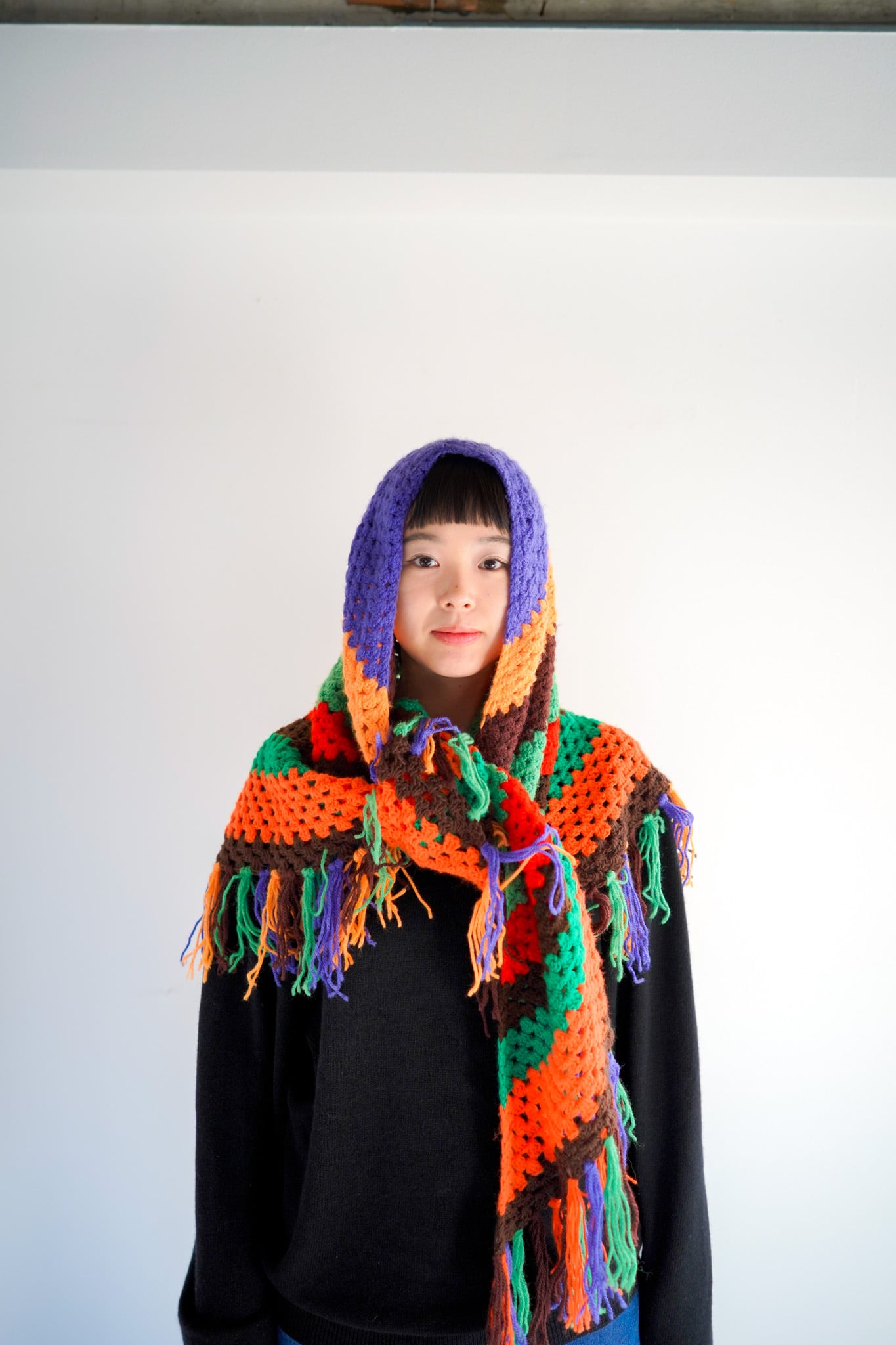 肩にかけるのも良いですし、頭から巻いても、また腰に巻いてコーディネートに色を差し込んでも良さそうです。