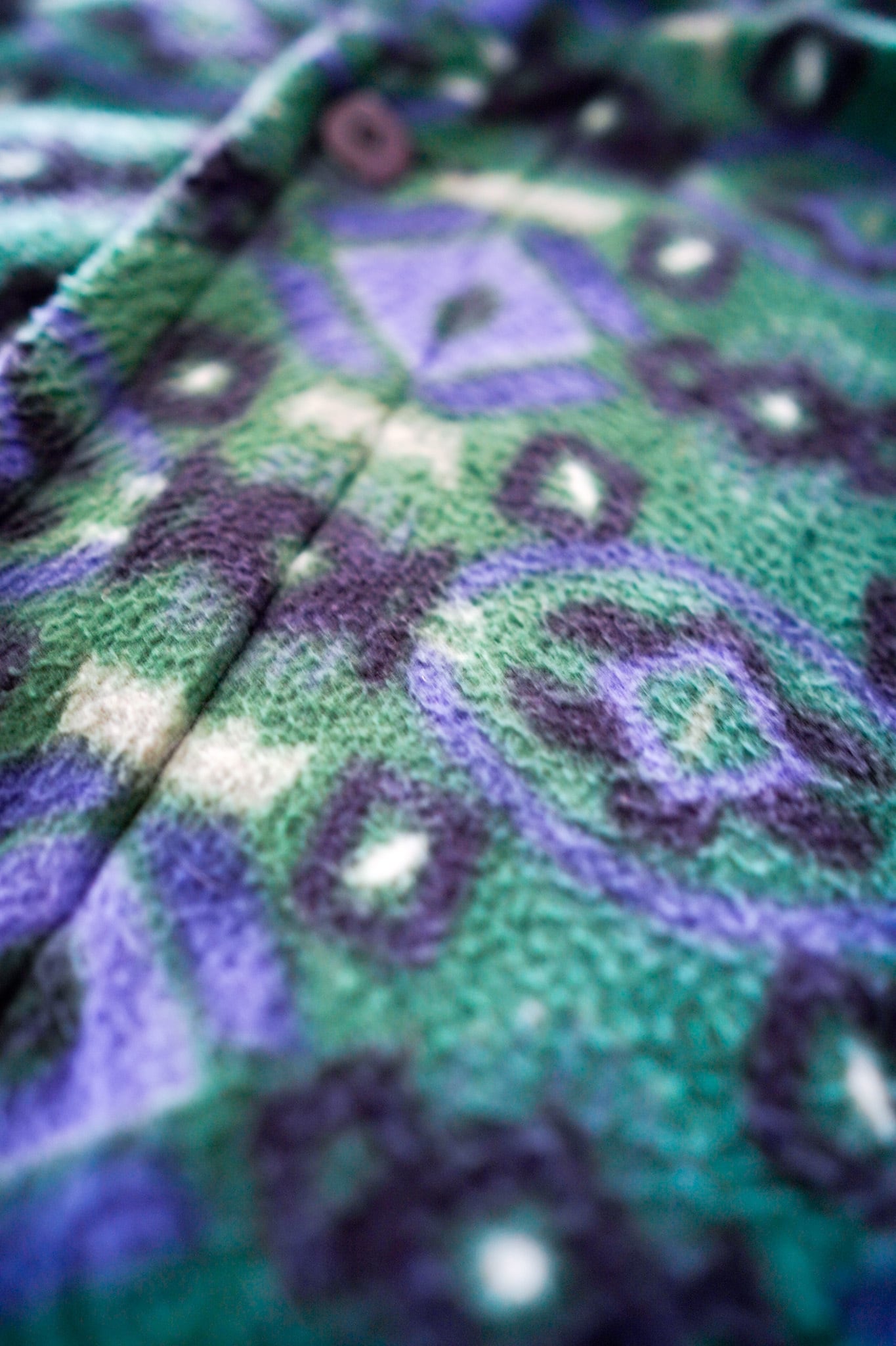 特徴的な柄のフリースはPatagoniaに通ずる魅力を感じますが、明らかに当ブランドには見当たらないシルエットが特徴的です。