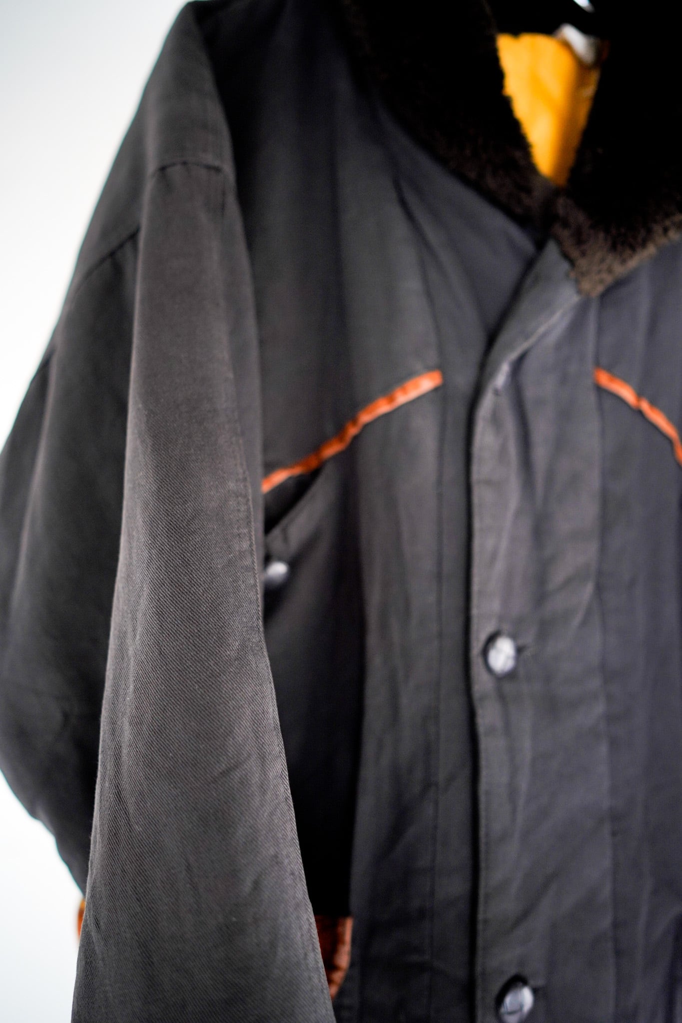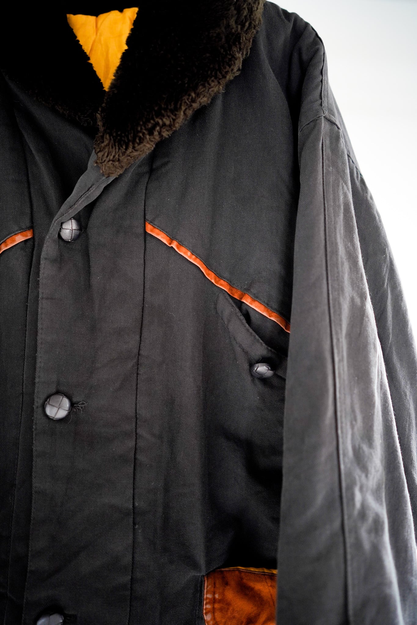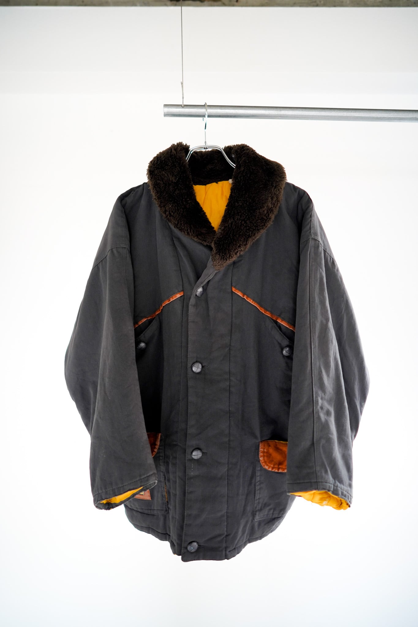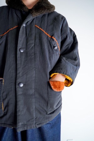 ショールカラースタイルのフライトジャケットをモチーフとしたアイテムであり、この再構築製がヨーロッパらしいアプローチとなっております。