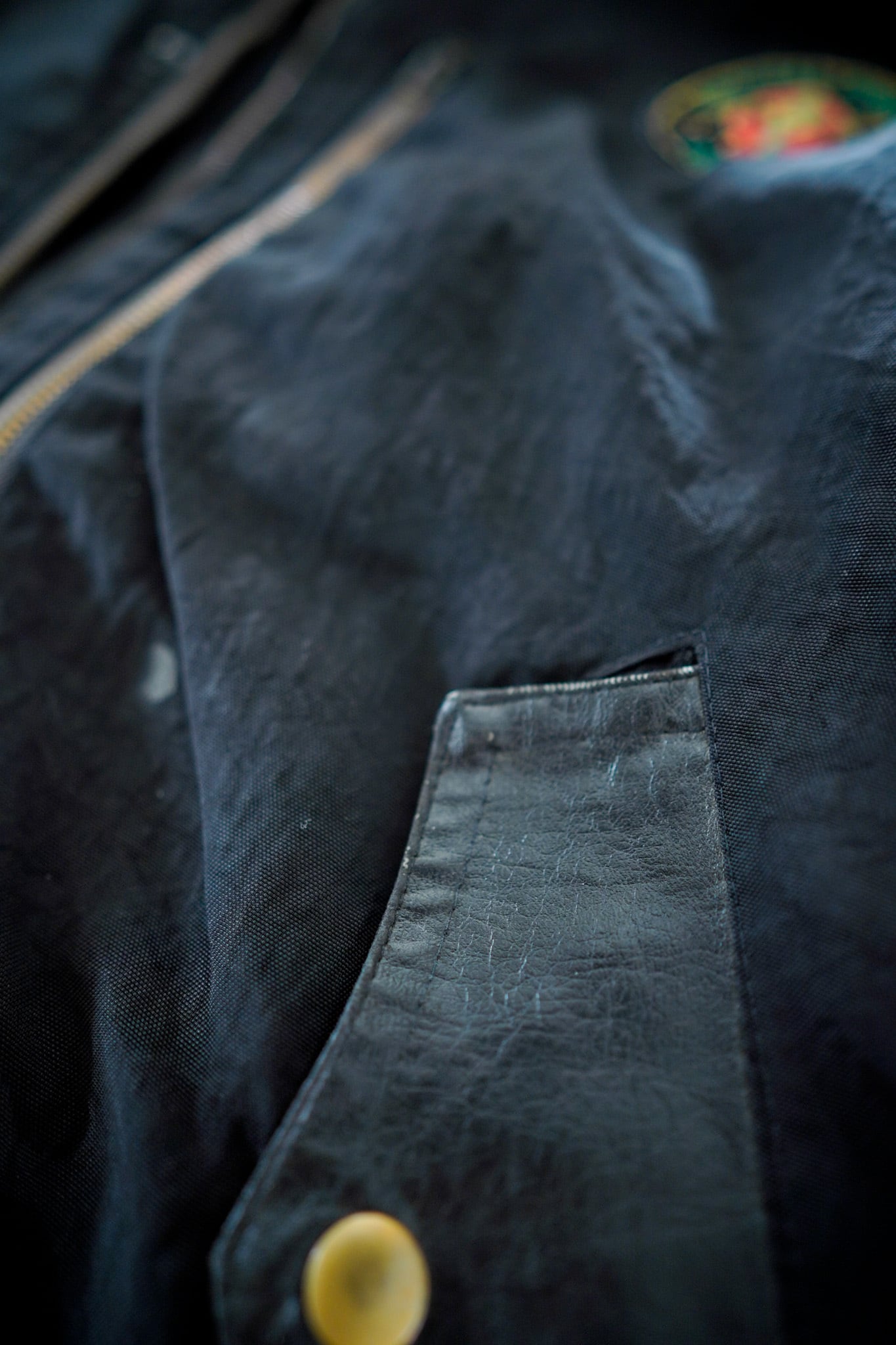 ボディはキルティングで仕立てられたフライトジャケットモチーフ。