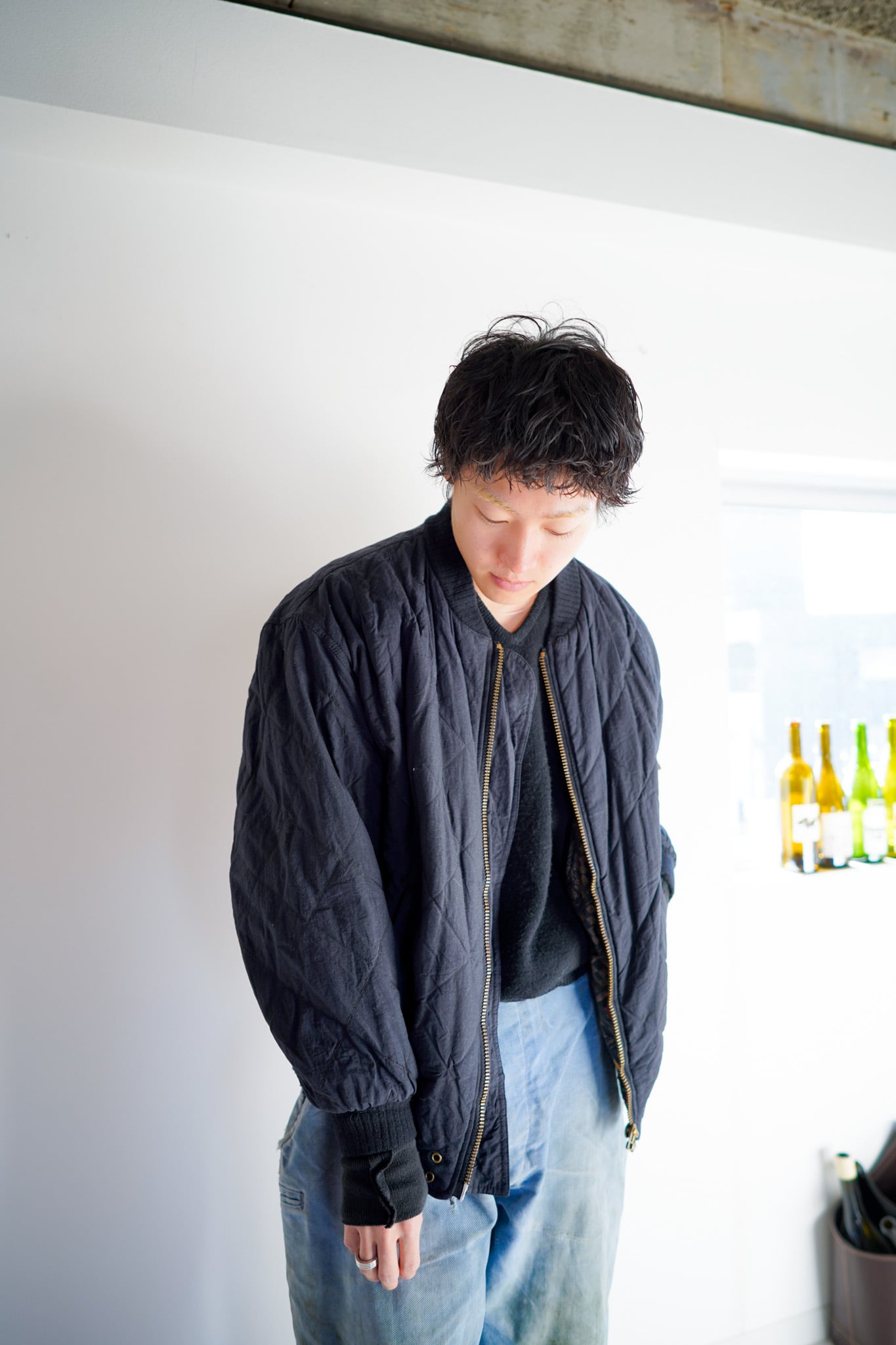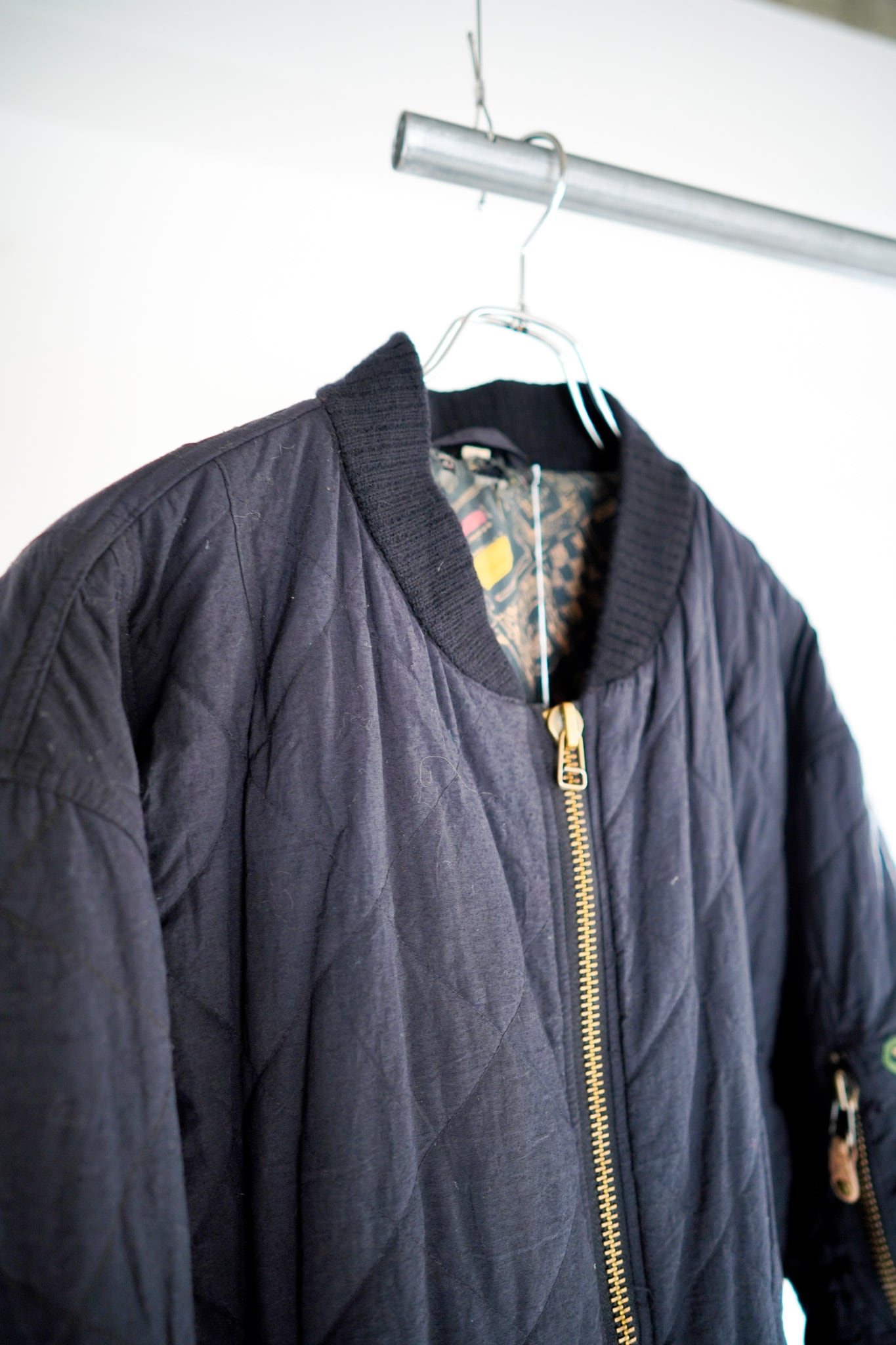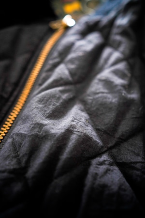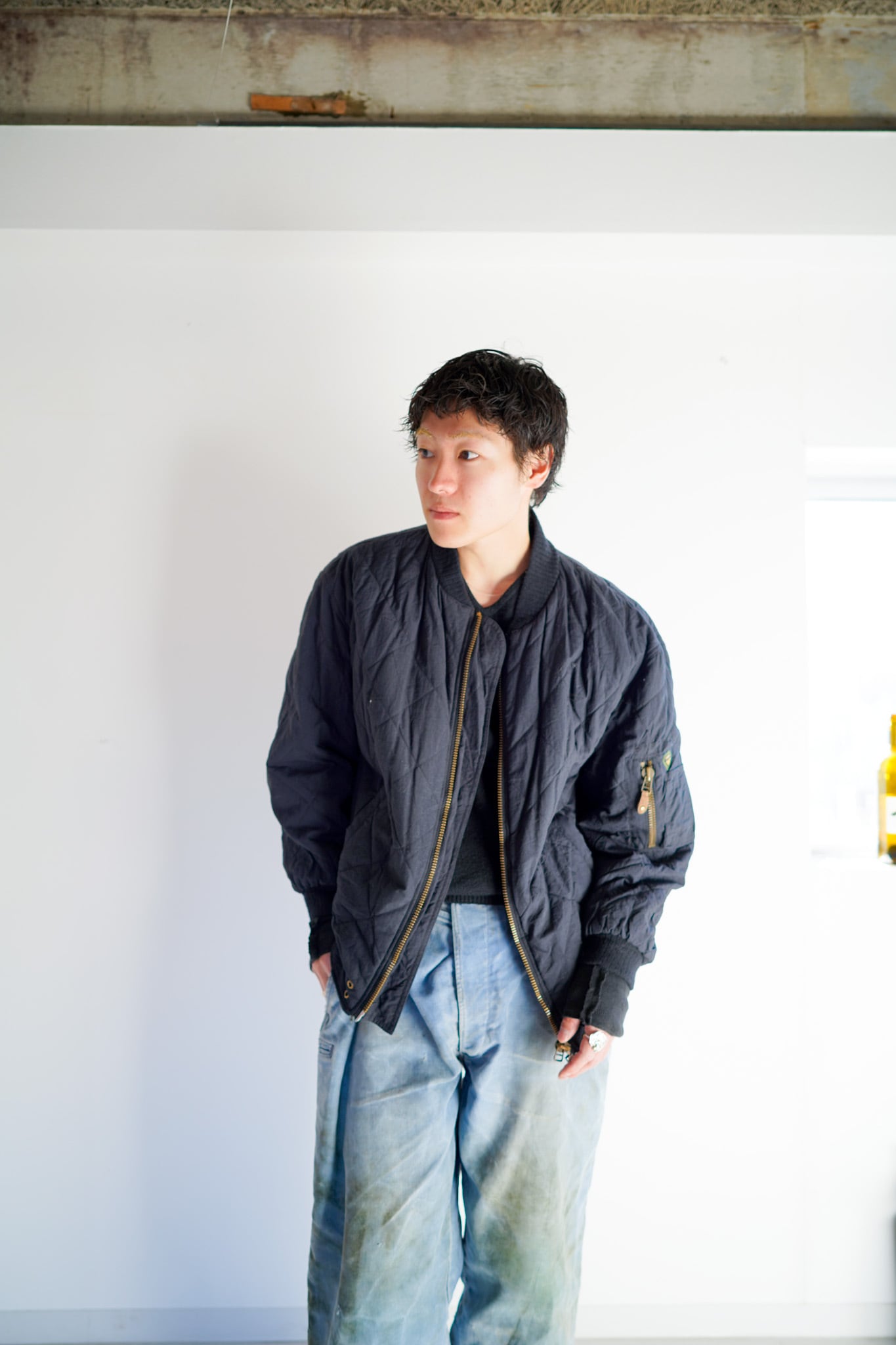 フライトジャケットモチーフのデザインに、随所に見られるレザーの切り返し。