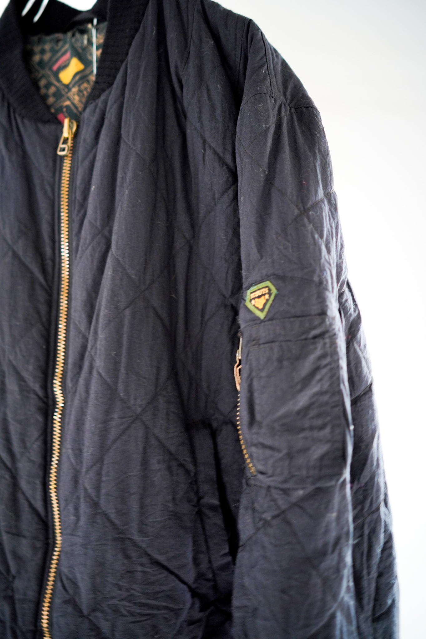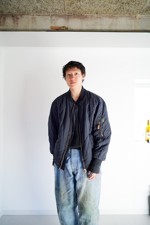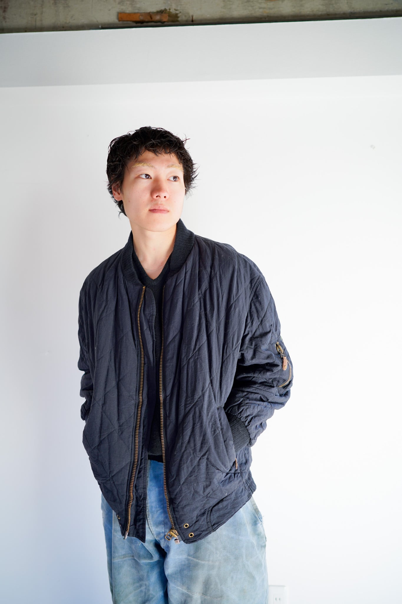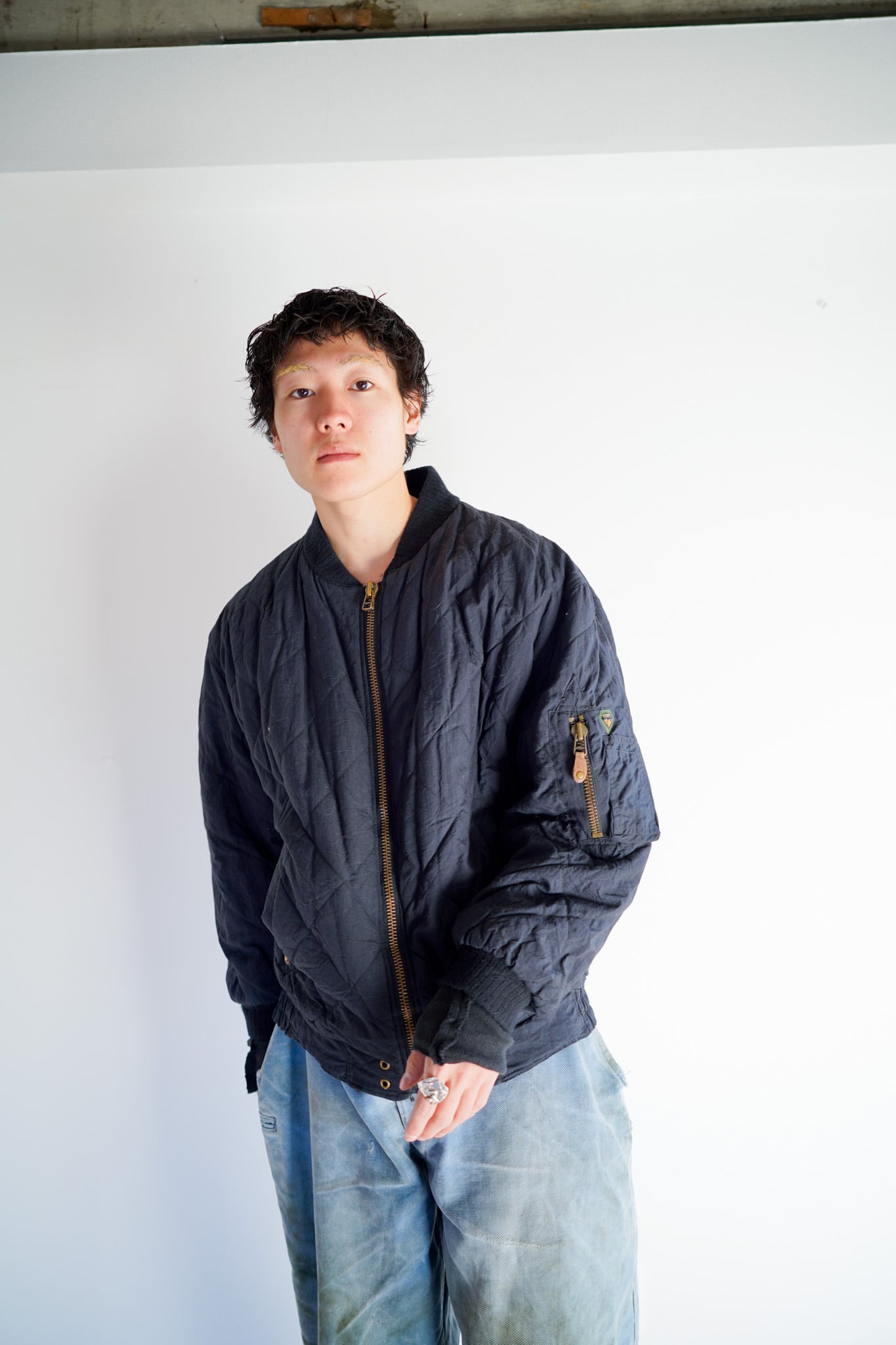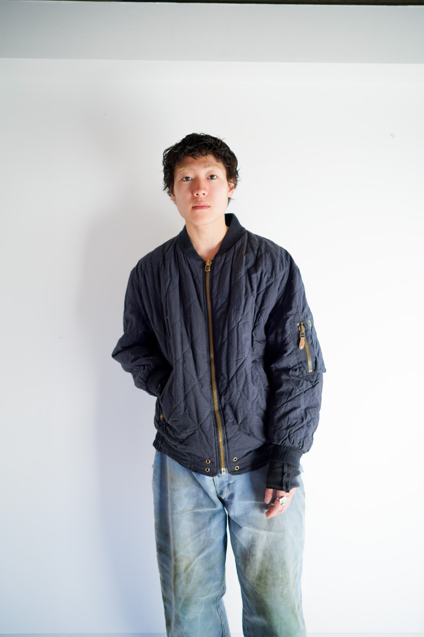 フライトジャケットモチーフのデザインに、随所に見られるレザーの切り返し。