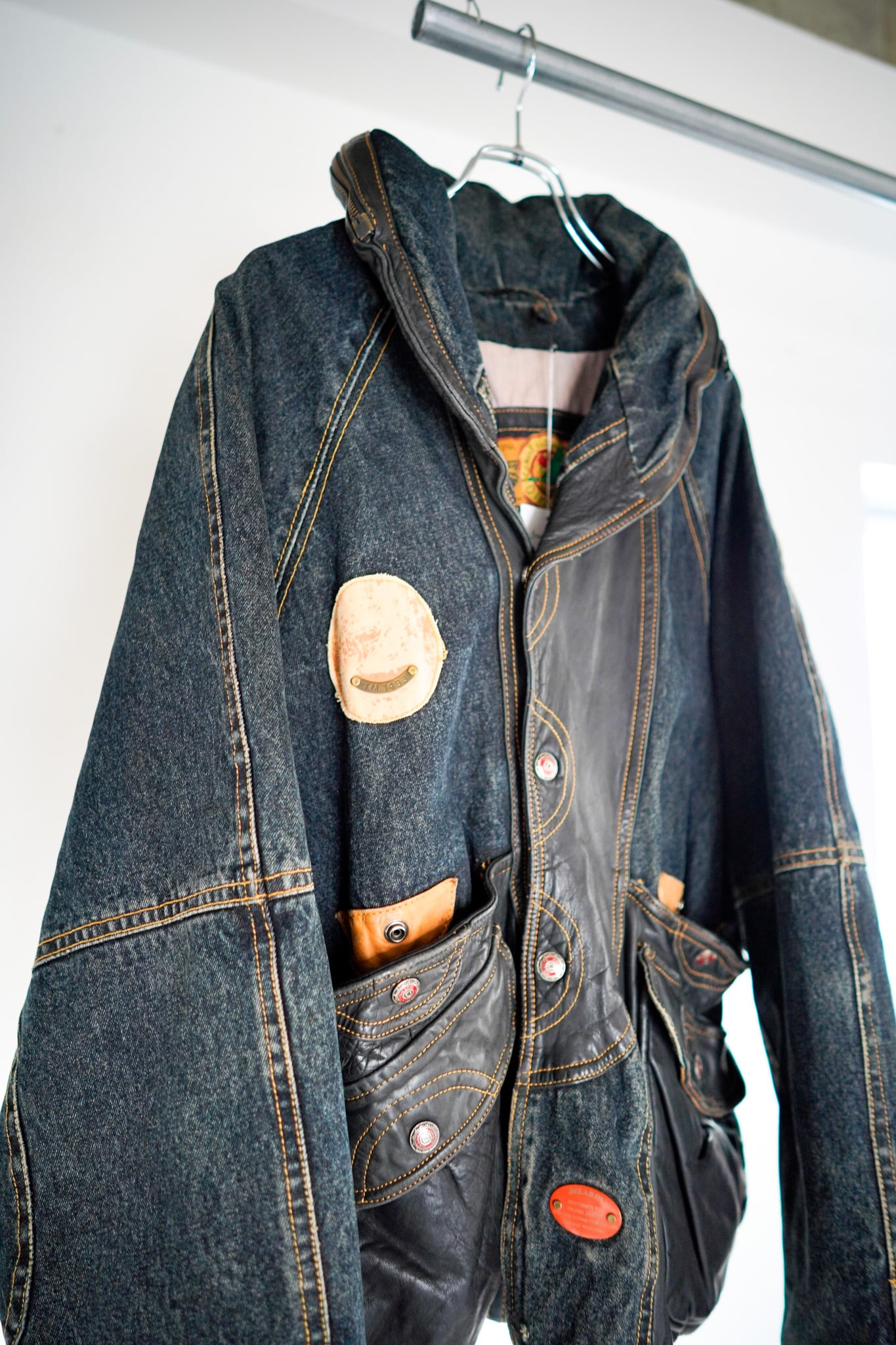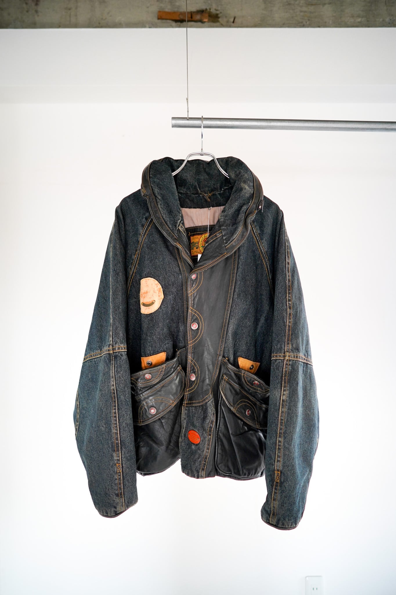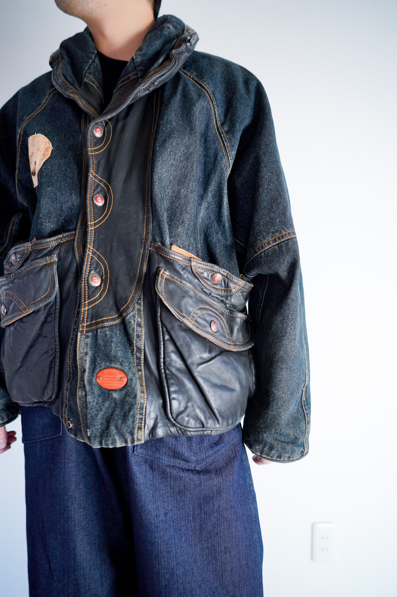 【1980s】"Italy" Denim×Leather design Blouson / 5-440