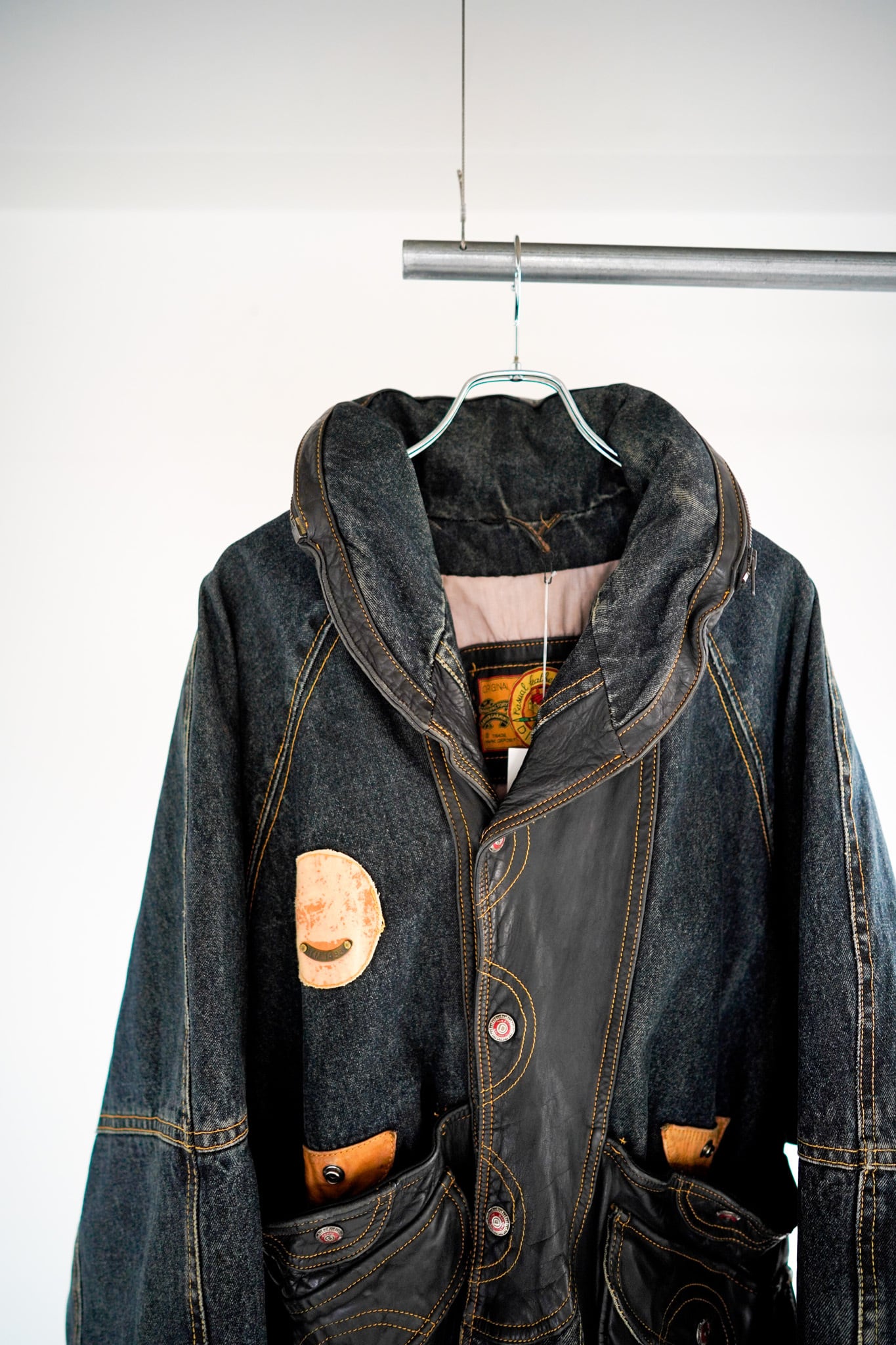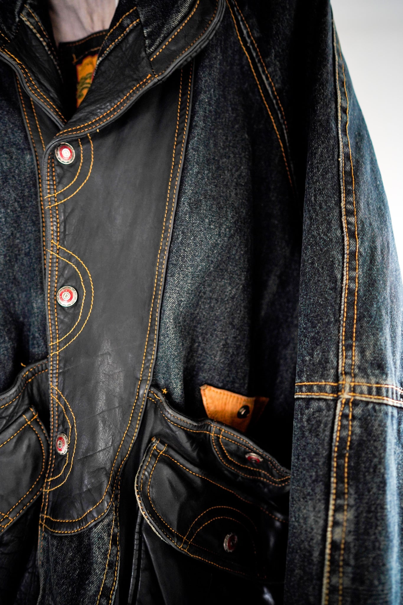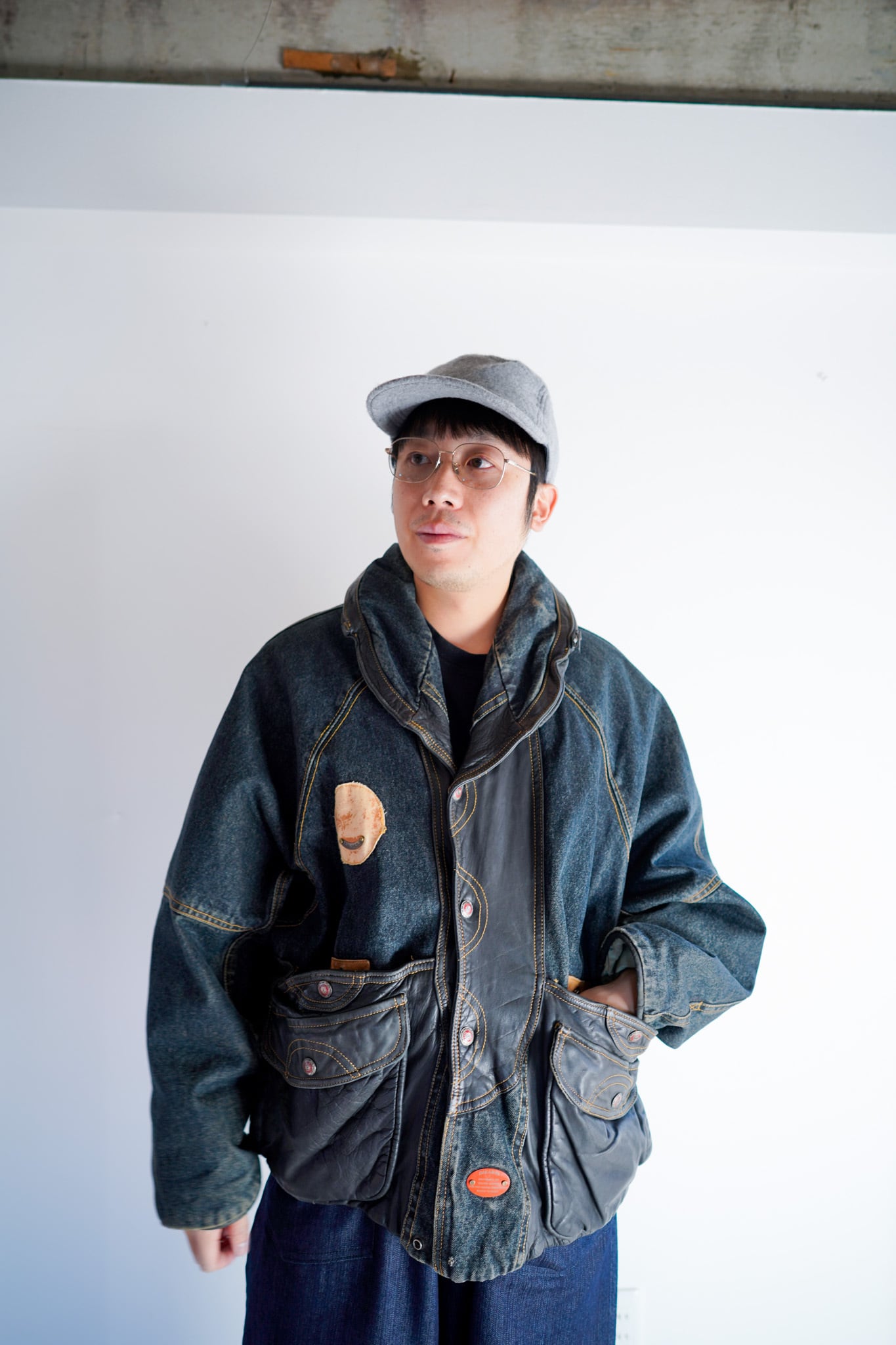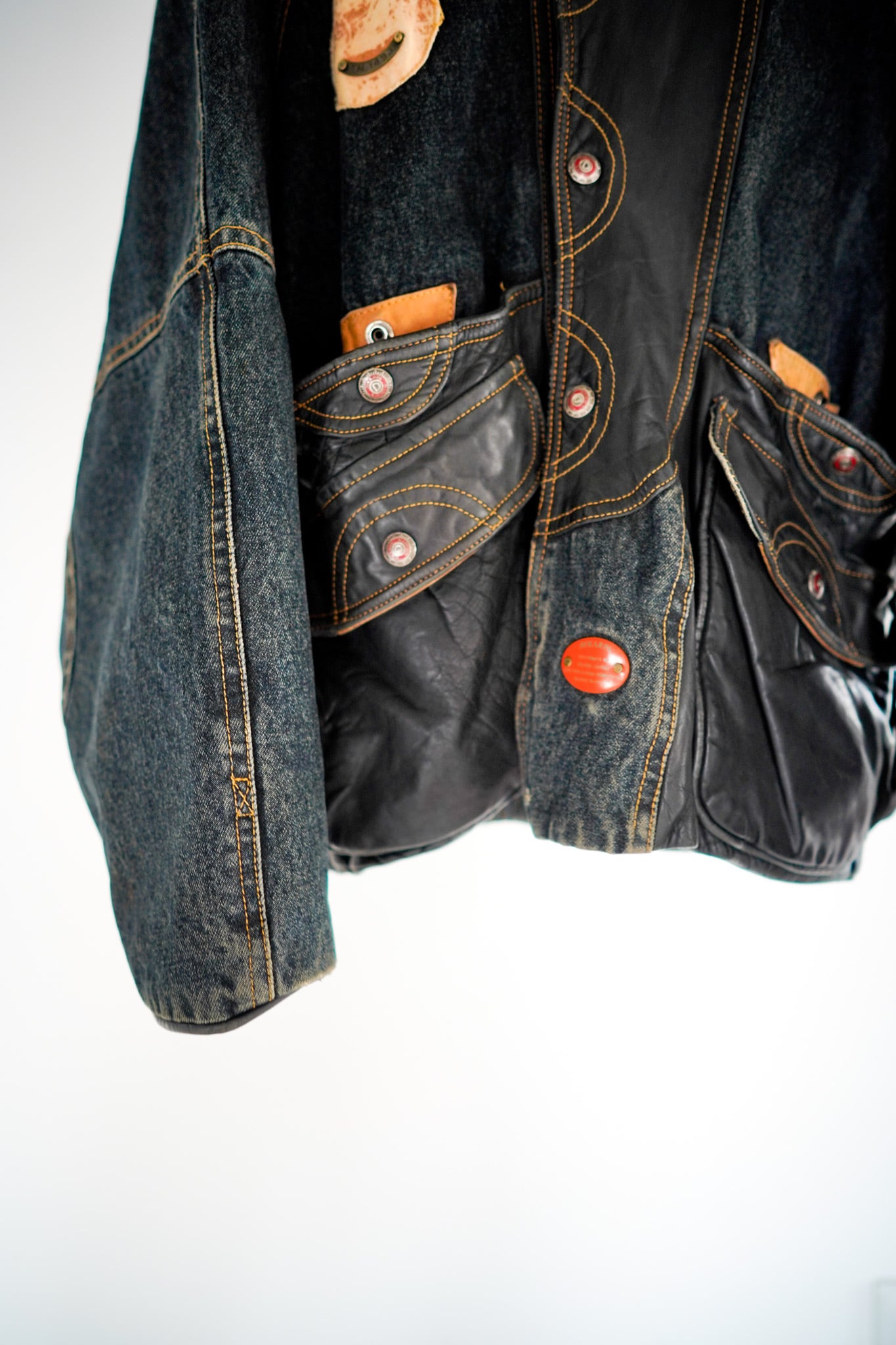 【1980s】"Italy" Denim×Leather design Blouson / 5-440