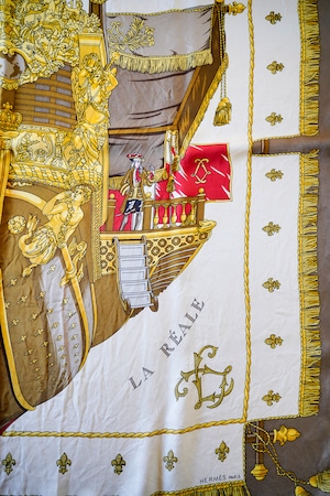 17世紀のフランス、太陽王ルイ14世の時代に活躍したガレー船(帆とオールを使って進む軍船)「ラ・レアル(La Réale)」がモチーフになっています。