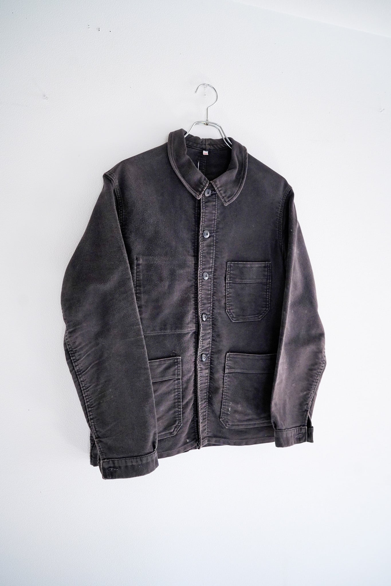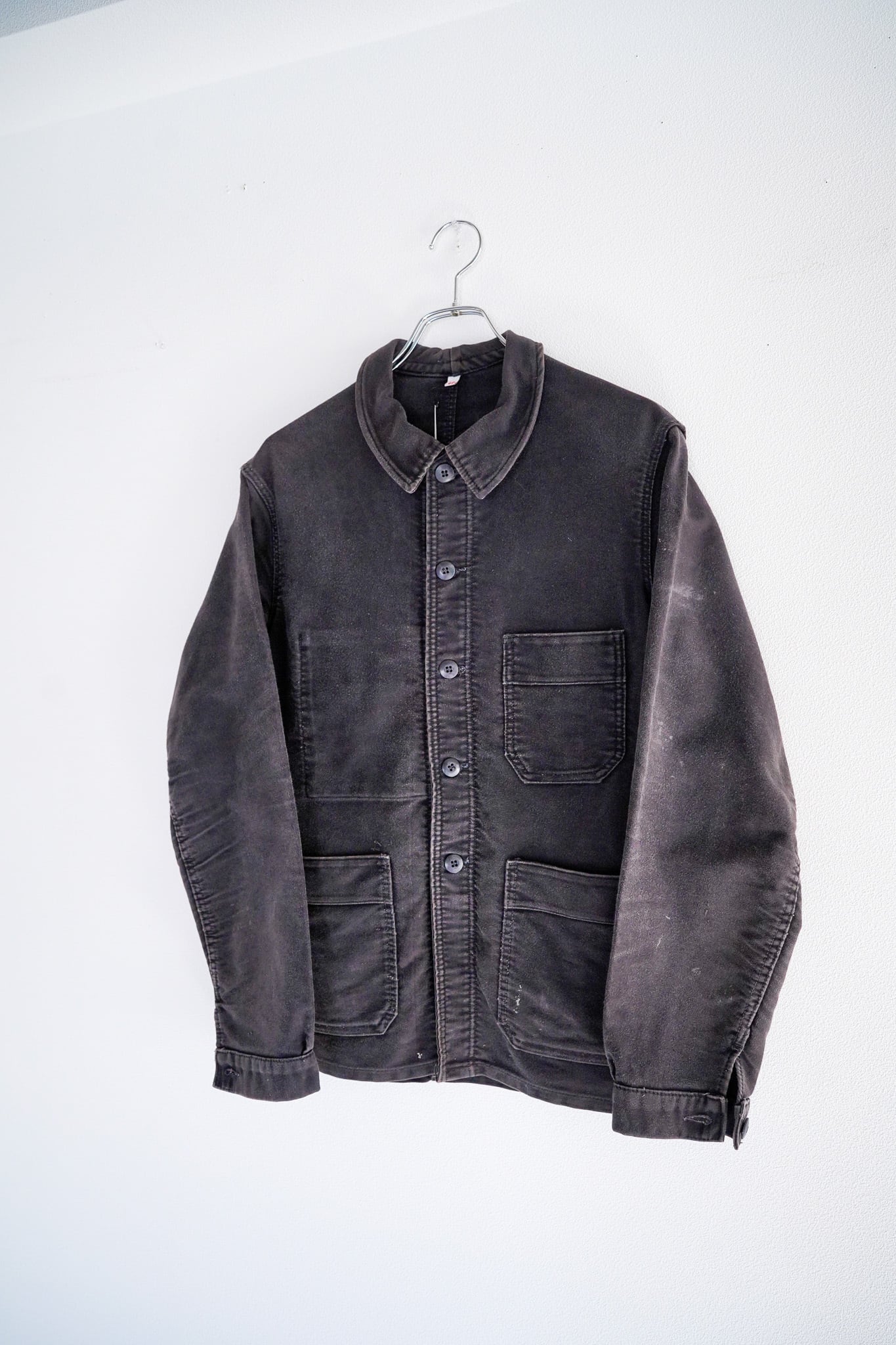 【1950-60s】"French Vintage" Black Moleskin French Work JKT/ 6-4