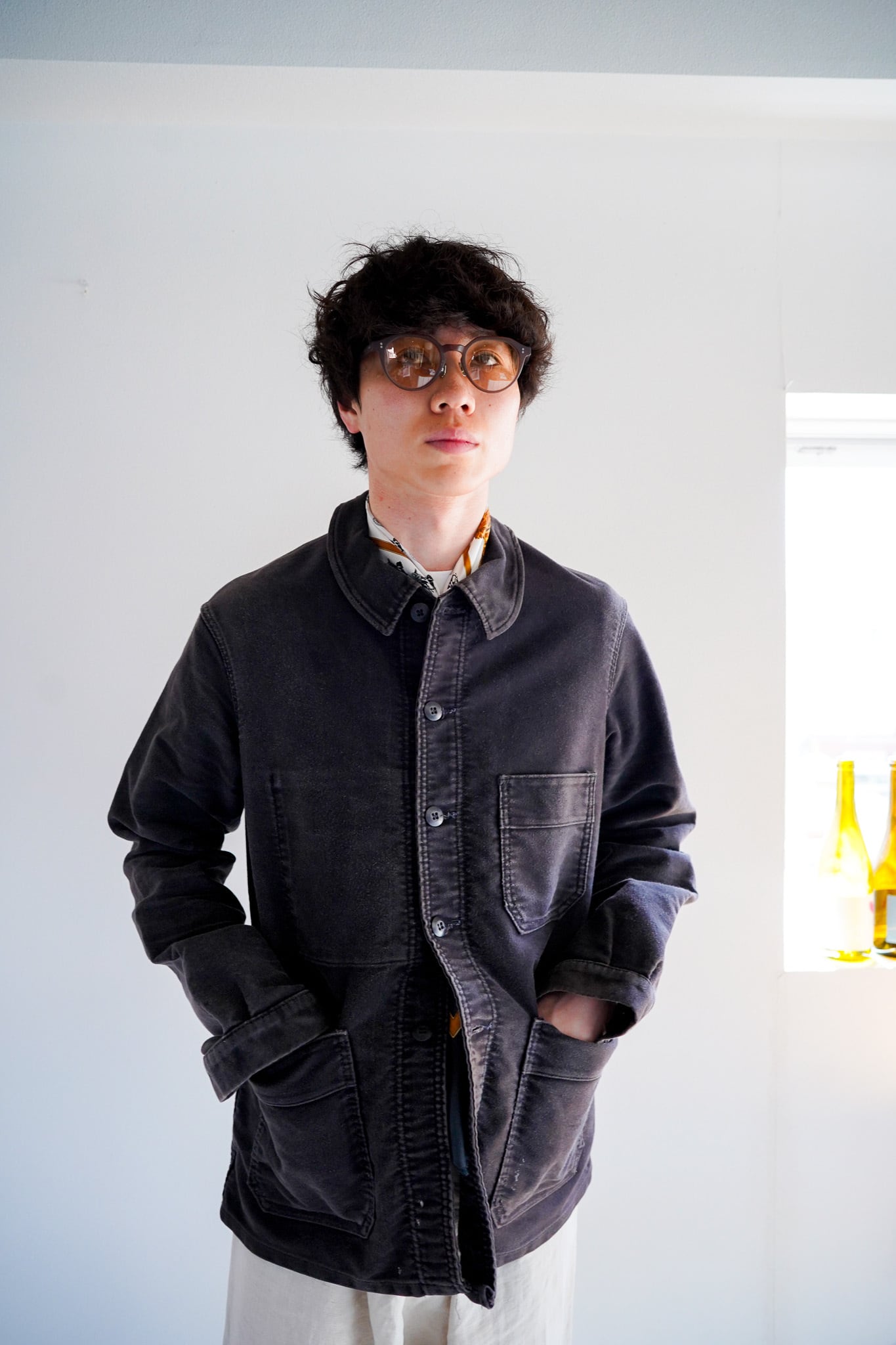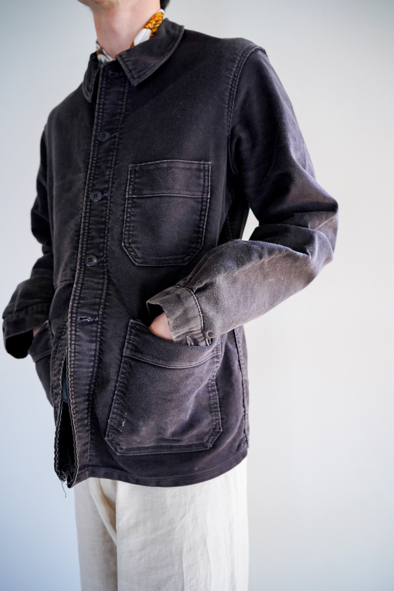 1950-60年代に製造された、フレンチヴィンテージのブラックモールスキンジャケット 。