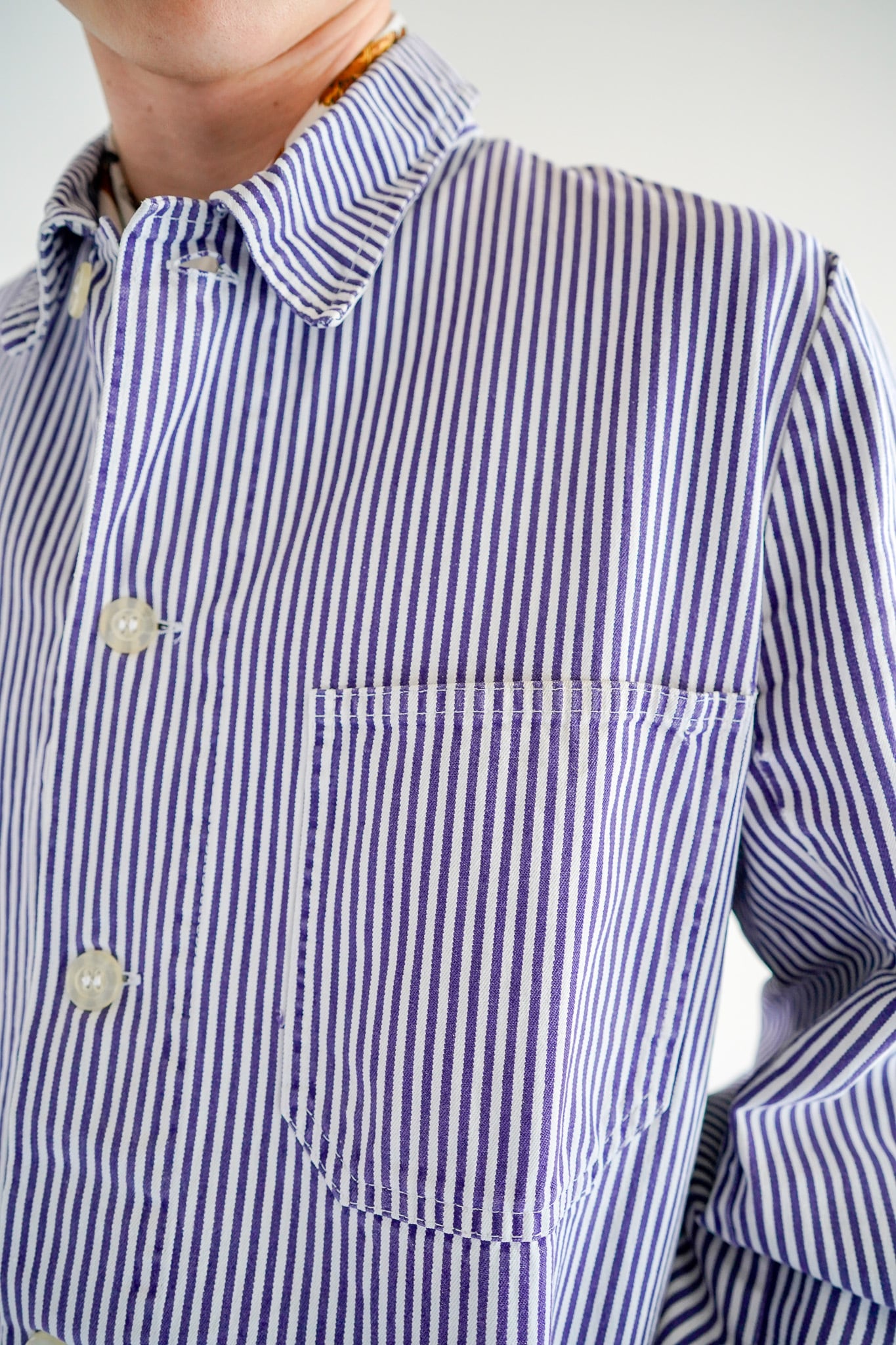 ディティールに目を向けると、左胸と両腰に配置された3つのパッチポケットがワークウェアらしい実用性を感じさせます。